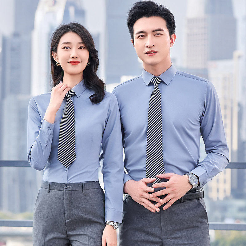 Career Shirt Woman Long Sleeve Bank Work Suit Shirt for men and women 4S same 4S Shop Business Business Positive Dress Custom Embroidered Logo