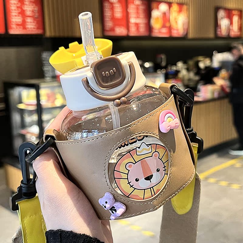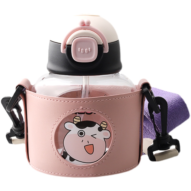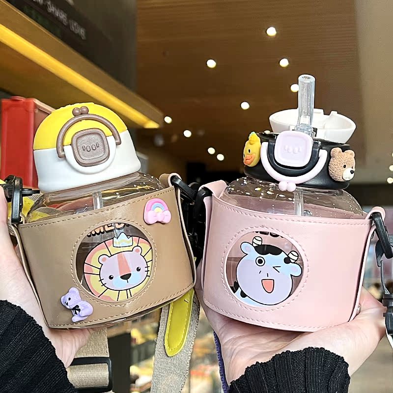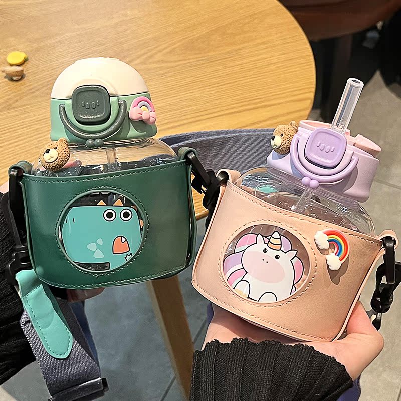 Cartoon water glass high face value female portable anti-fall student large belly cup children's cup out for home drinking straw cup