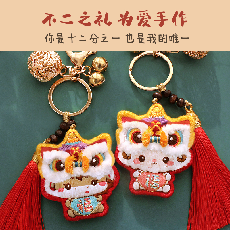 Hand embroidery making diy zodiac wake lion keychain pendant for boyfriend and girlfriend Father's Day Tiger Year small gift
