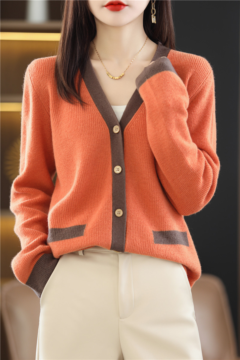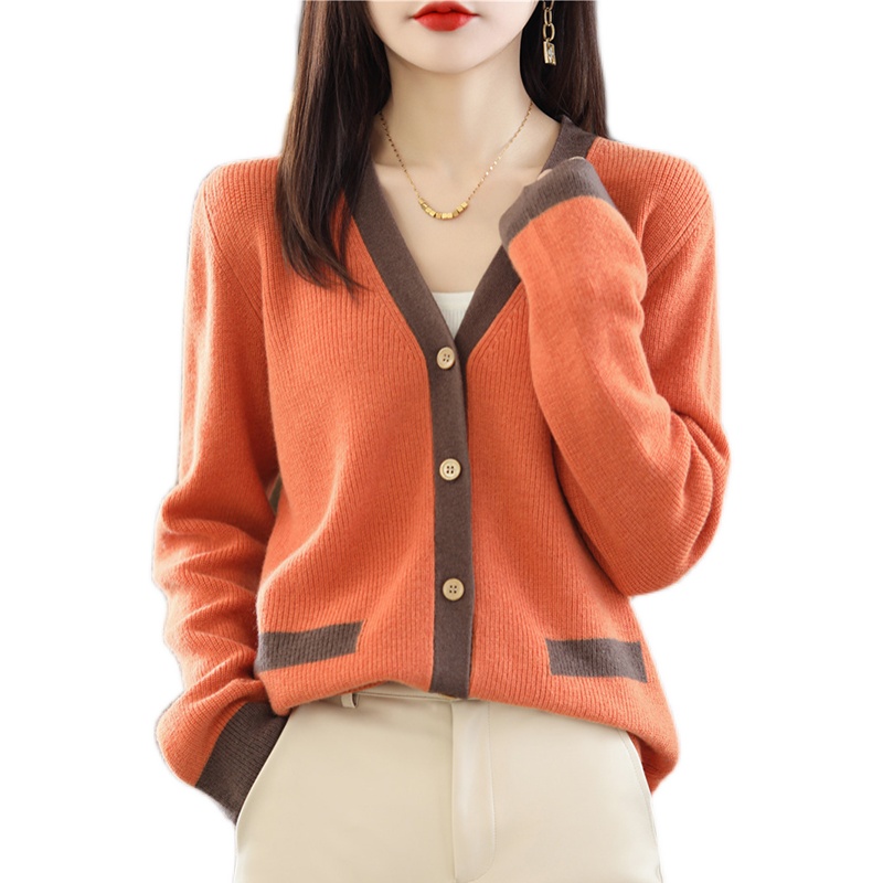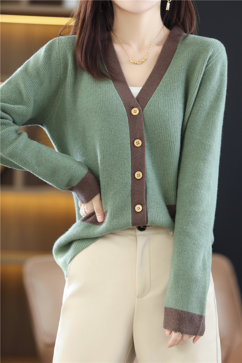 2022 spring autumn new collage 100% pure wool cardiovert woman V collar loose sweater knit bottom jacket