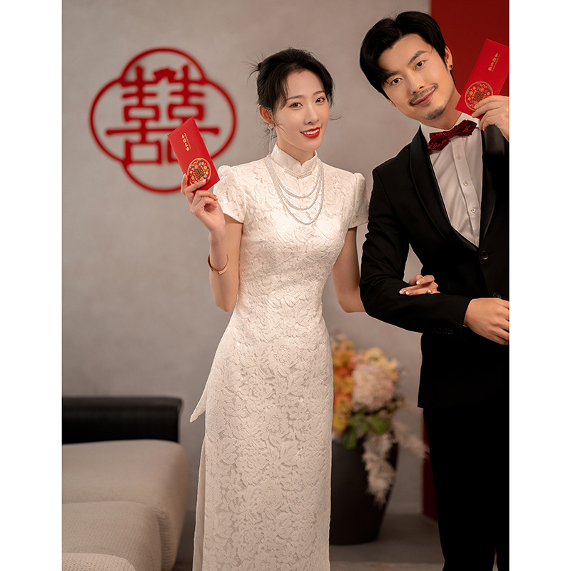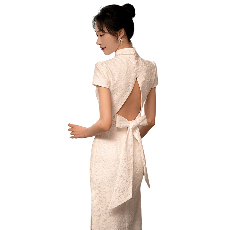 Improved cheongsam toast clothing bride temperament slim slim fishtail out gauze French high-end retro red dress
