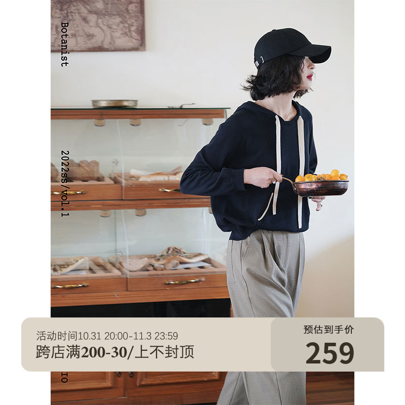 "Blank Drawing Workshop" Real Wearable All-match Retro Lazy Casual Loose Sweater Shirt Top Thin Hooded Knit Sweater
