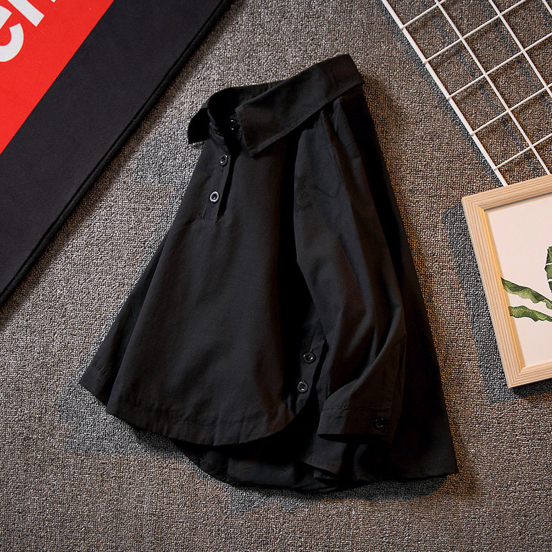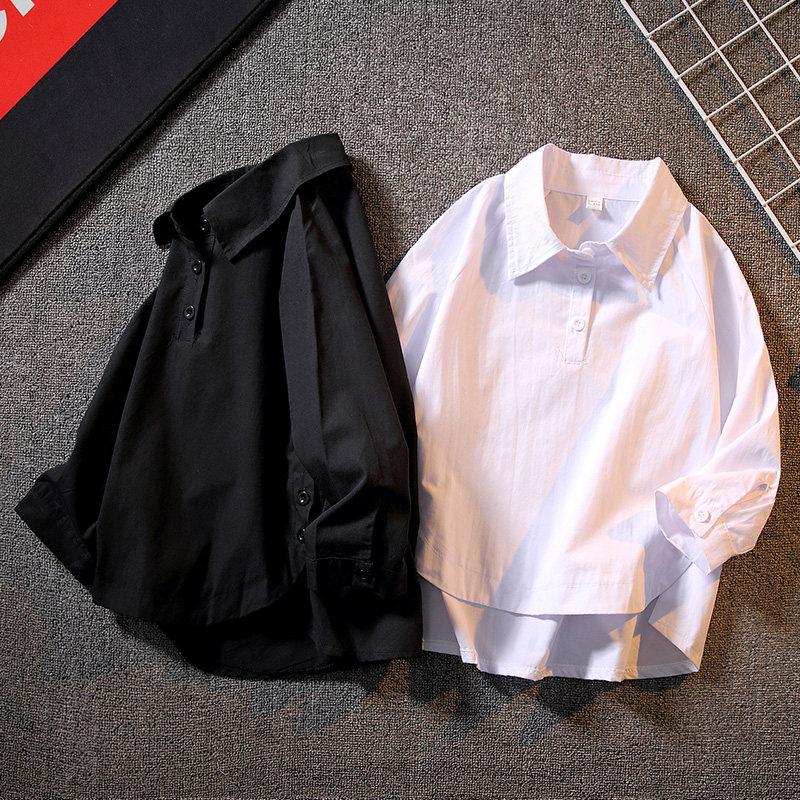 Boys shirt cotton spring and autumn 2022 new Korean version of the big boy black autumn boy children's autumn shirt trend