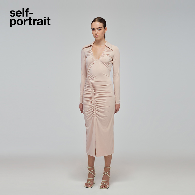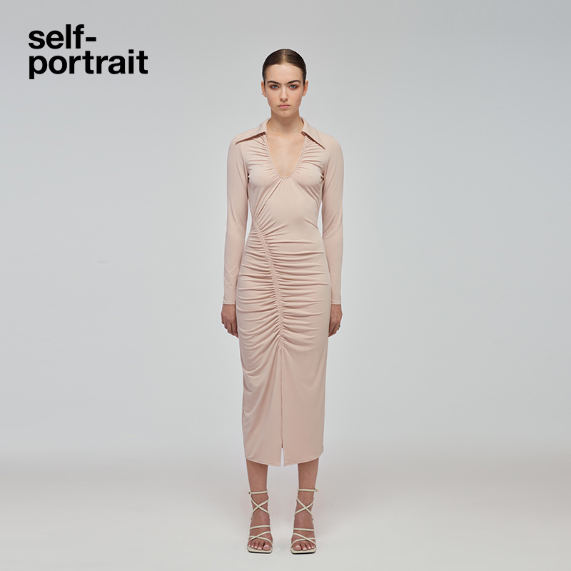 self-portrait 2022 spring and summer light coffee color sexy V-neck slim waist dress