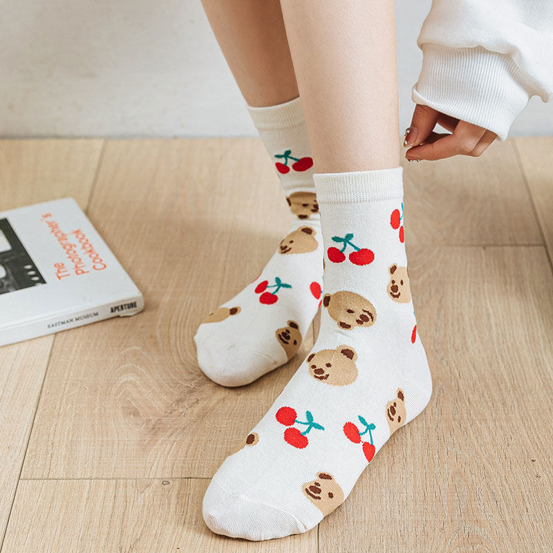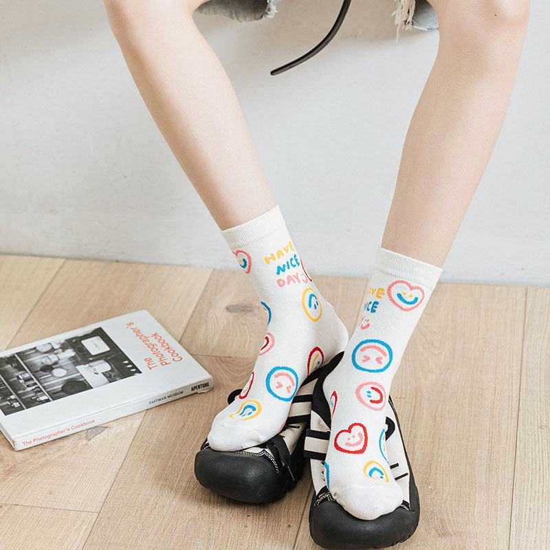Nut mommy cartoon bear socks in spring and autumn in the cute tide of graffiti in the smiling face of socks