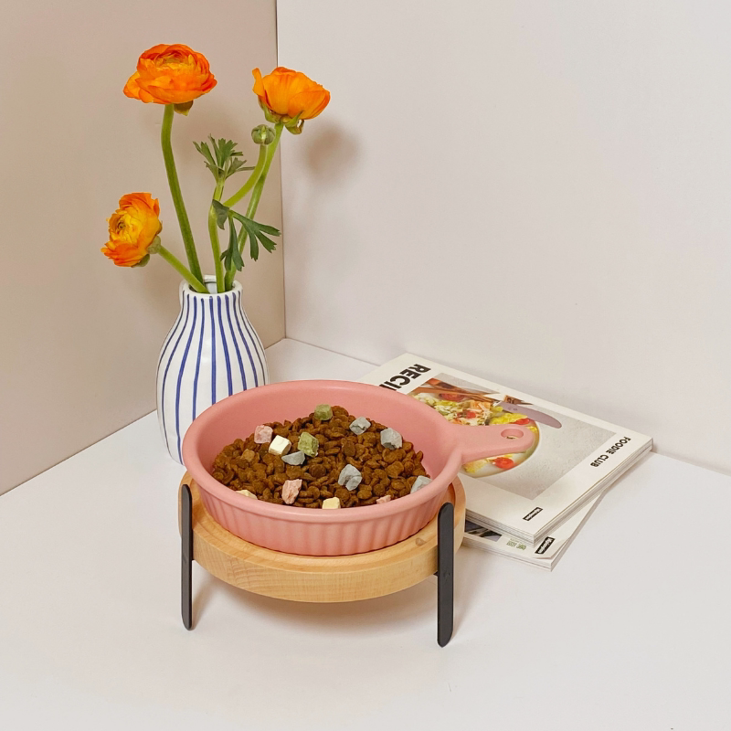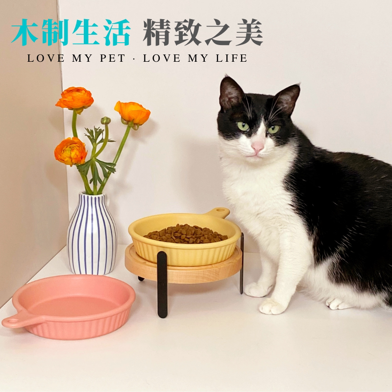 Solid wood pet table elevated neck ceramic cat bowl Japanese anti-topper pot bowl frame large caliber dog basin