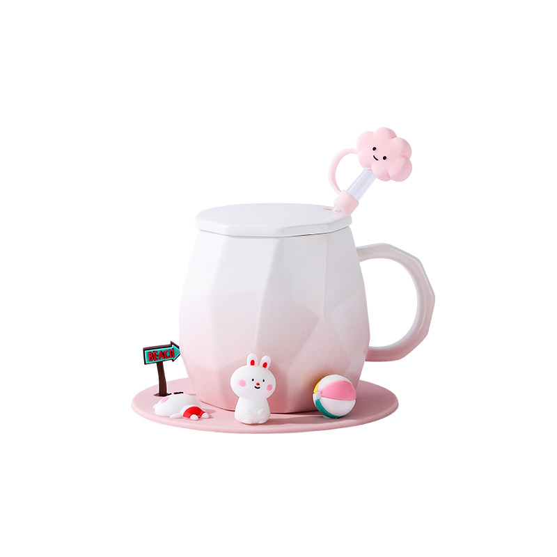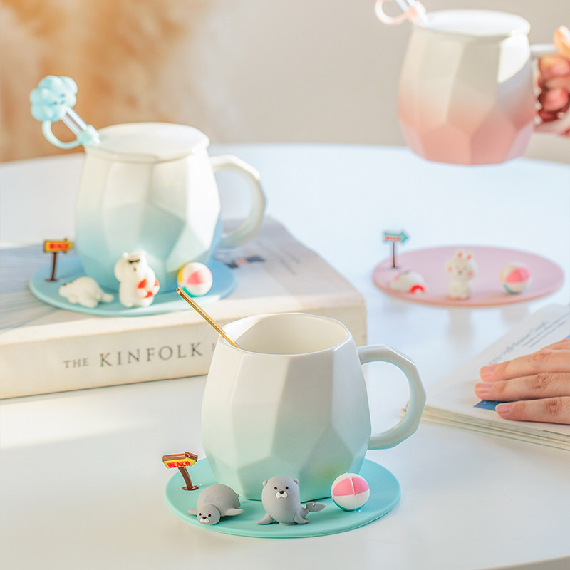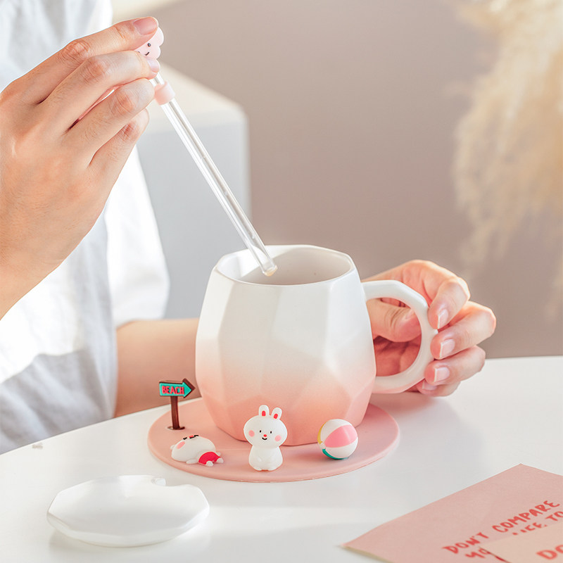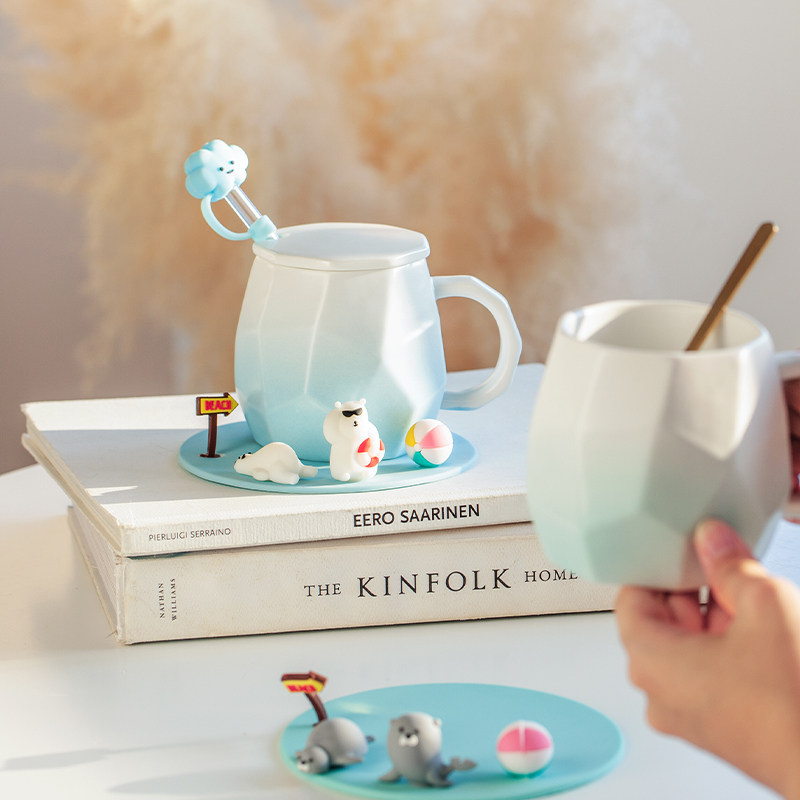 Cute mug mug with lid and spoon ceramic water cup couple cup office design niche breakfast cup