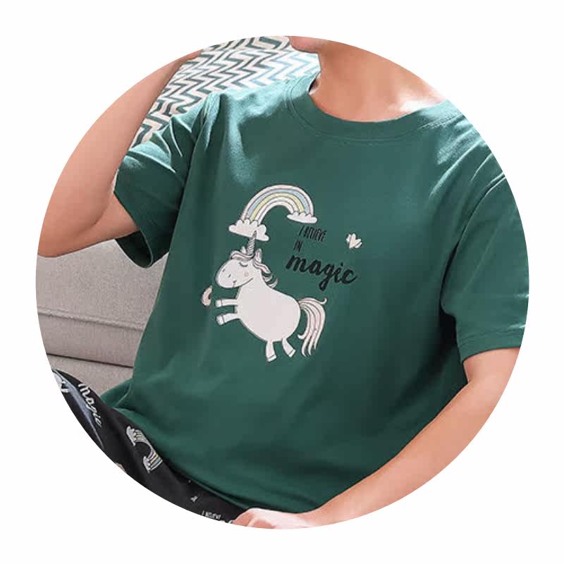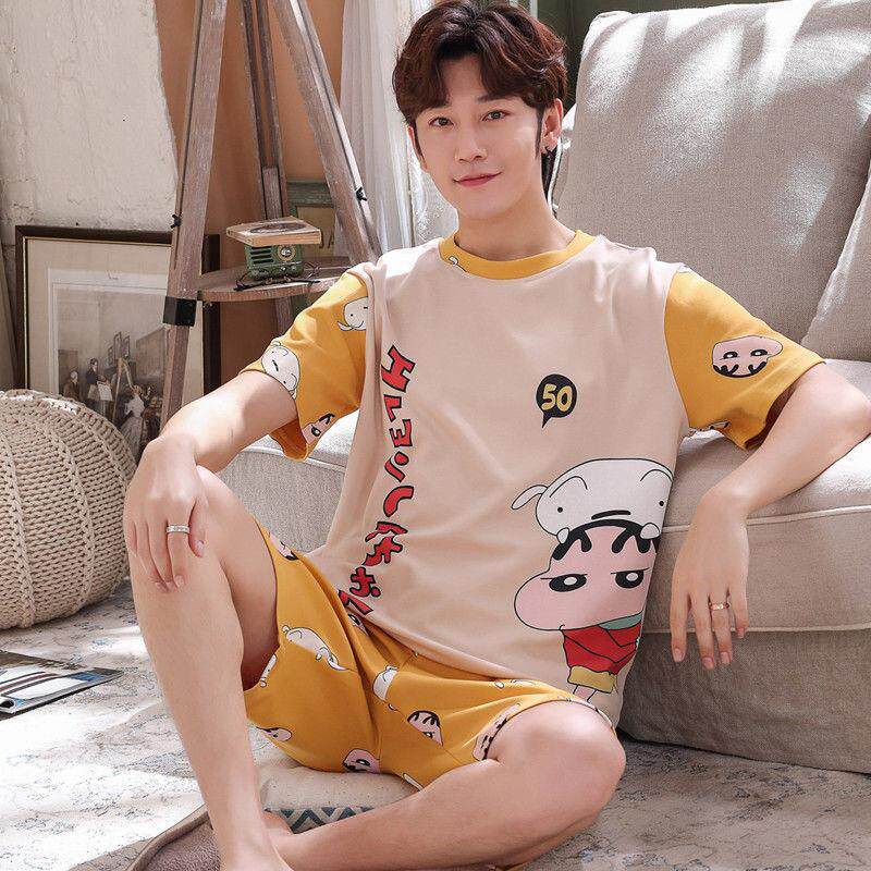 Men's Pajamas Summer Cotton Short Sleeve Cartoon Teen Boys Summer Thin Homewear Student Set