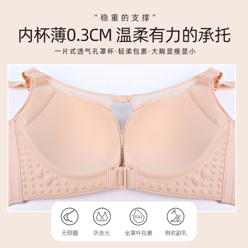 Large size front button underwear woman large chest thin fee to anti-drop on bra upper bra beautiful tuning underwear
