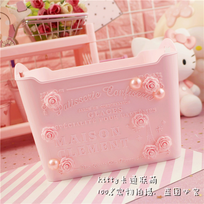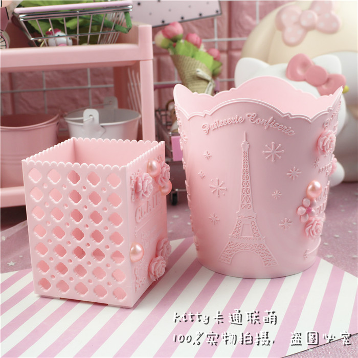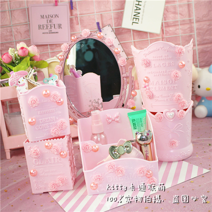 Sub-lattice pen holder heart-shaped Kitty mirror pink square pen holder deep pink round pen holder oval shaped with mirror latent pink round containing barrel small number containing basket Heart-shaped Mirror Large Containing Basket Butterfly Knot