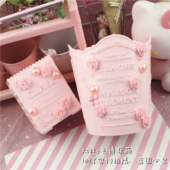 Three years II Class Rose Lovely Creative Relief Pink Girl Hearts Make-up Brush Pen Holder Hollowed-out stationery collection