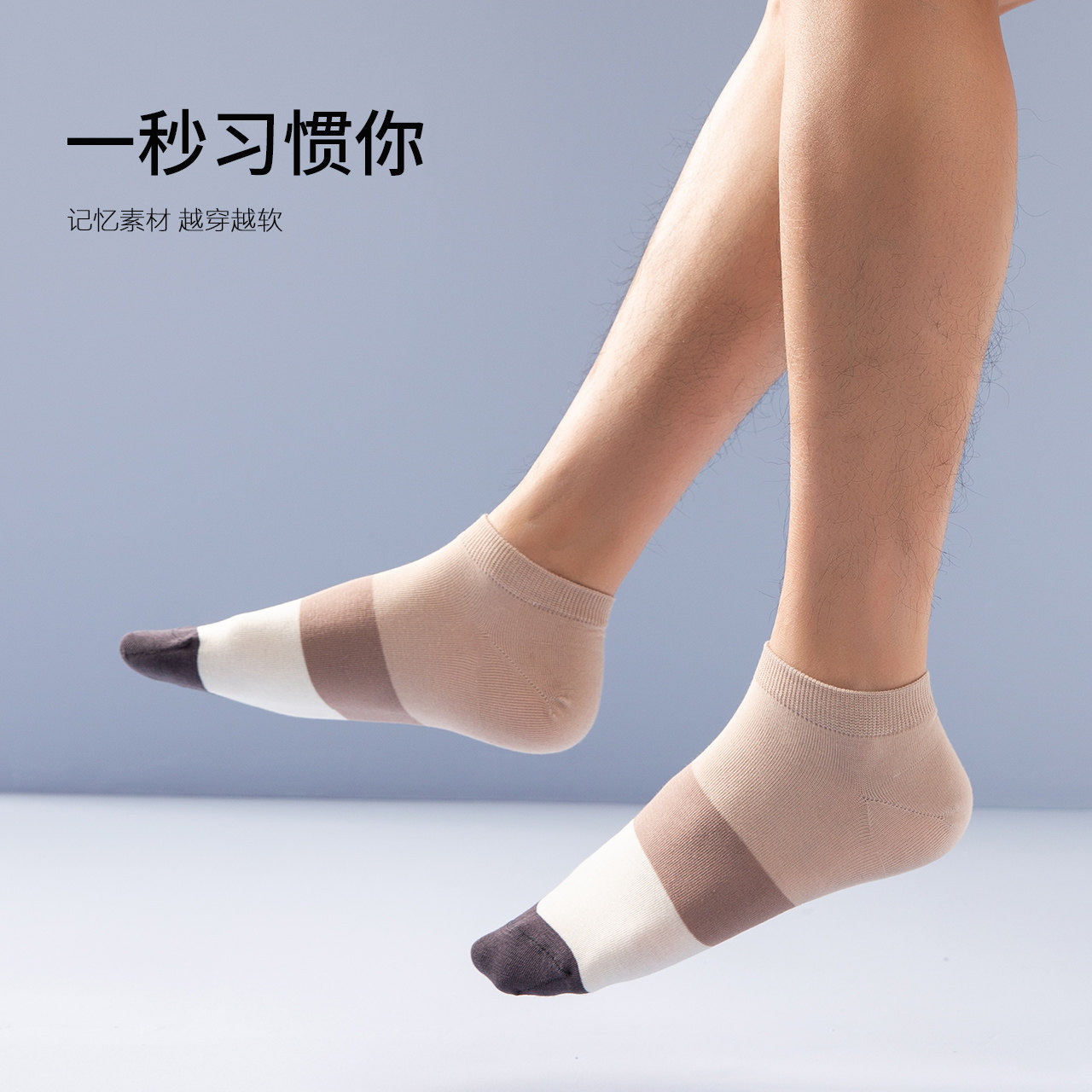 Nell Socks Men's Short Spring and Summer Strip White Japanese Plant Short Skin Slide Low Help Cotton Invisible Socks