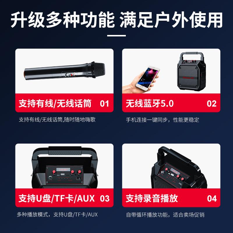 Square dance audio outdoor speaker k song heavy subwoofer high volume portable portable wireless bluetooth player sound large band microphone small mobile performance singing outdoor