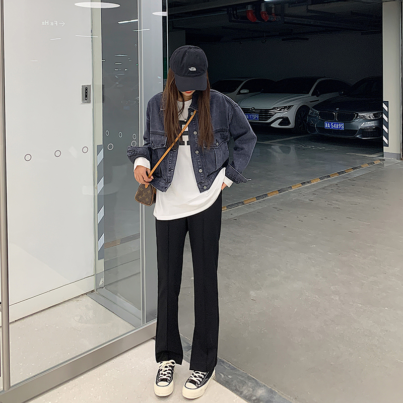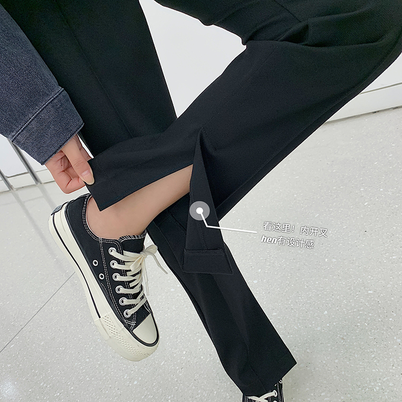 (Seconds Change chopstick legs) High waist Western Pants Women Spring New High Waist Straight Drum Pituitary Open Fork Microlao Casual Pants