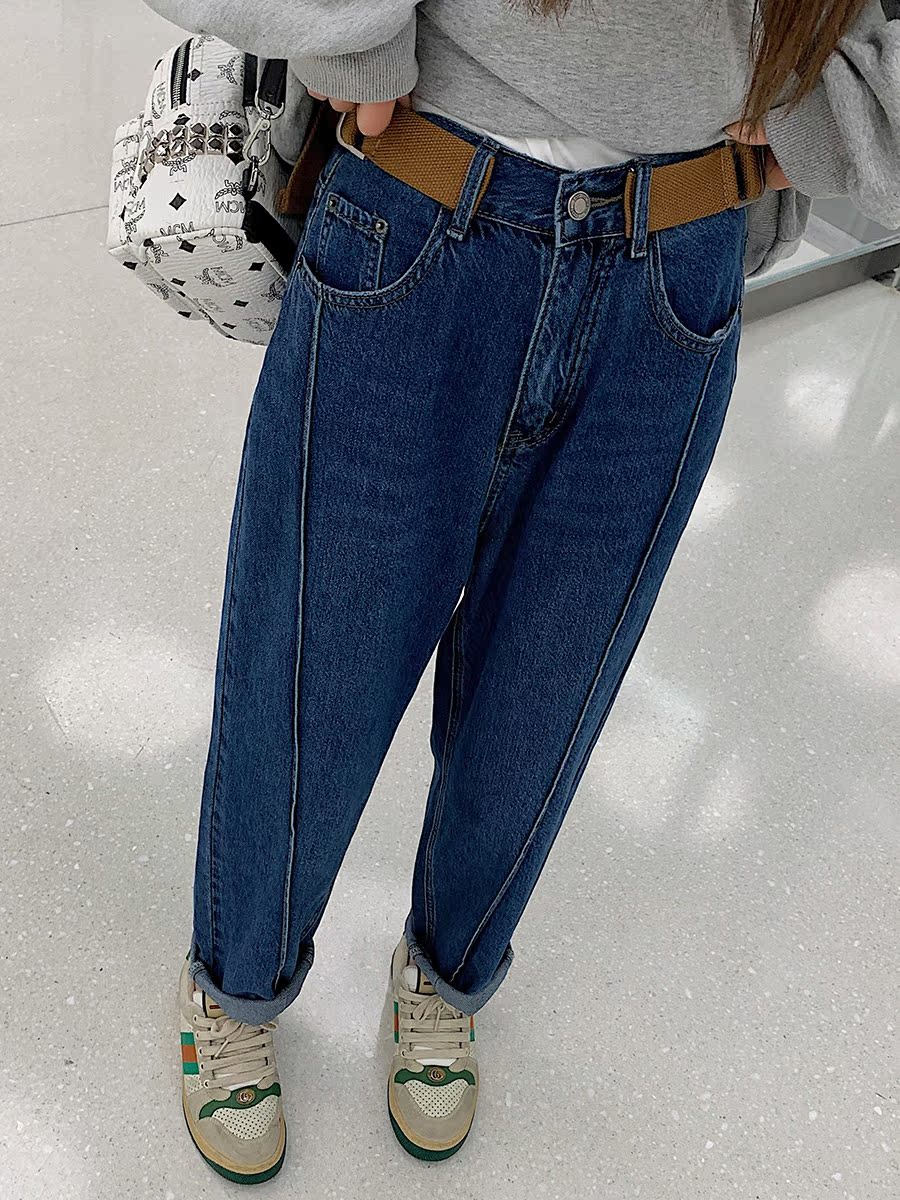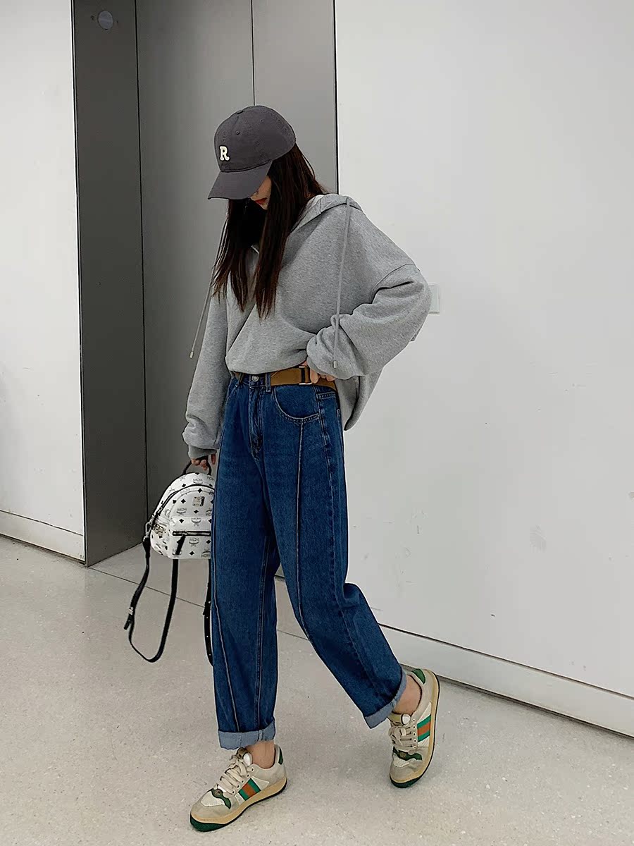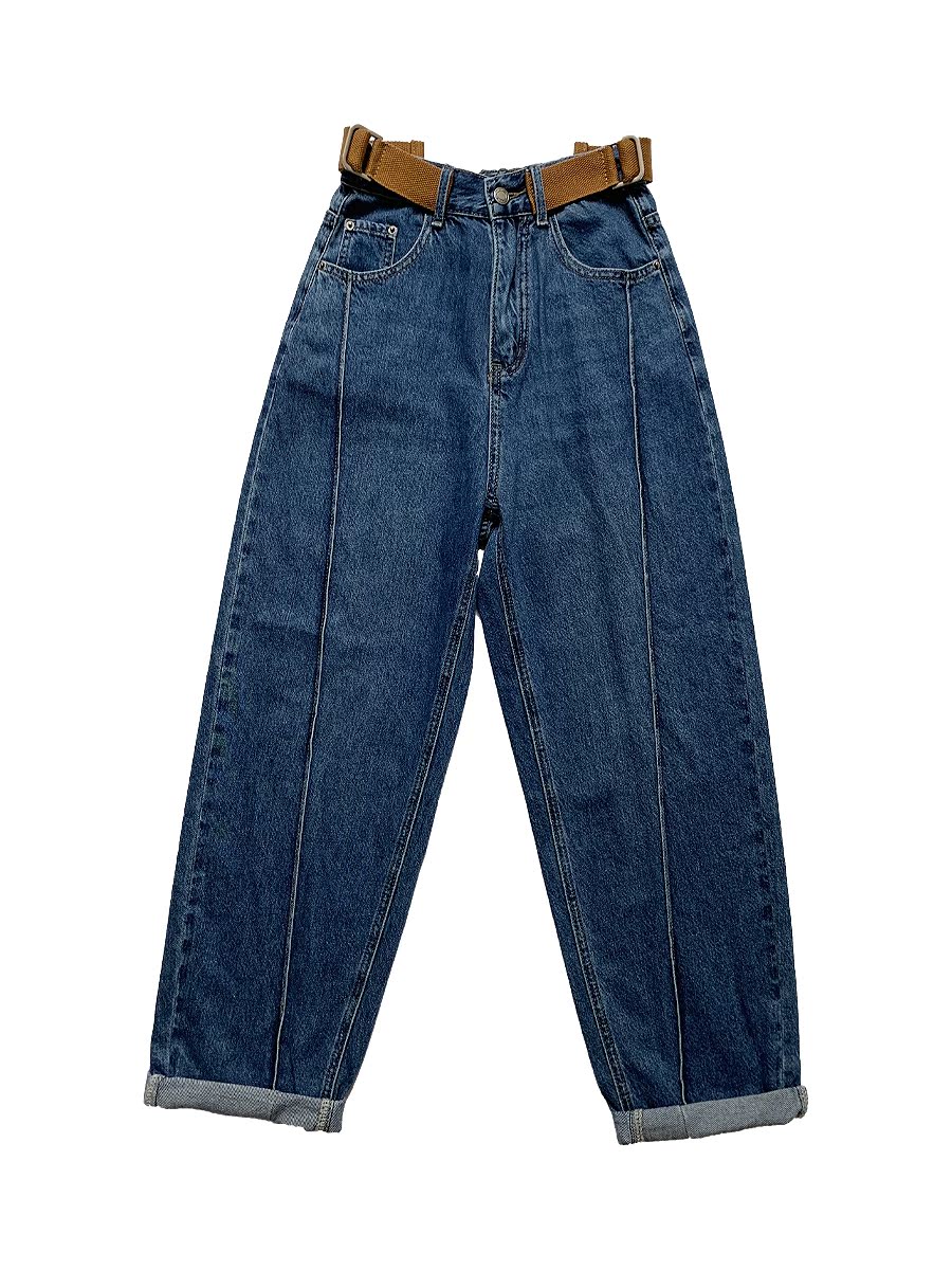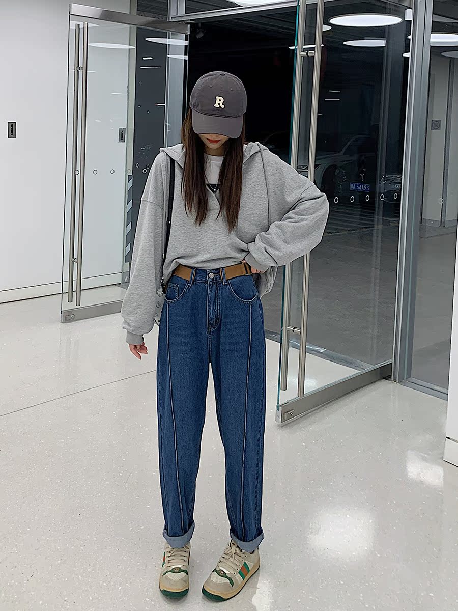 Elastic waist jeans women's 2022 new spring and autumn high waist straight pants loose daddy pants slim harem pants