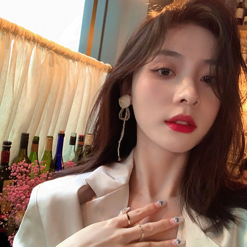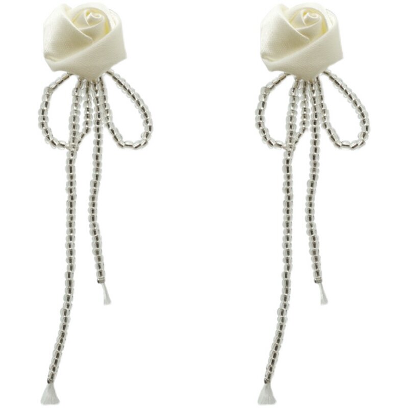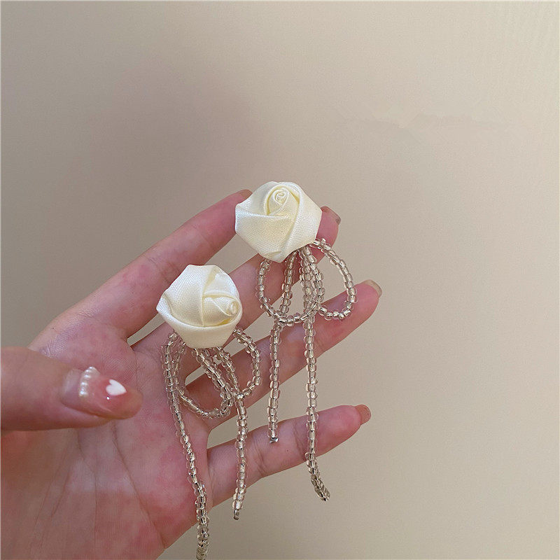 Rose flower long version of rice bead flow Su earrings female silver needle Superfairy Butterfly with a small crowd design sense fashion ear decoration light and luxurious