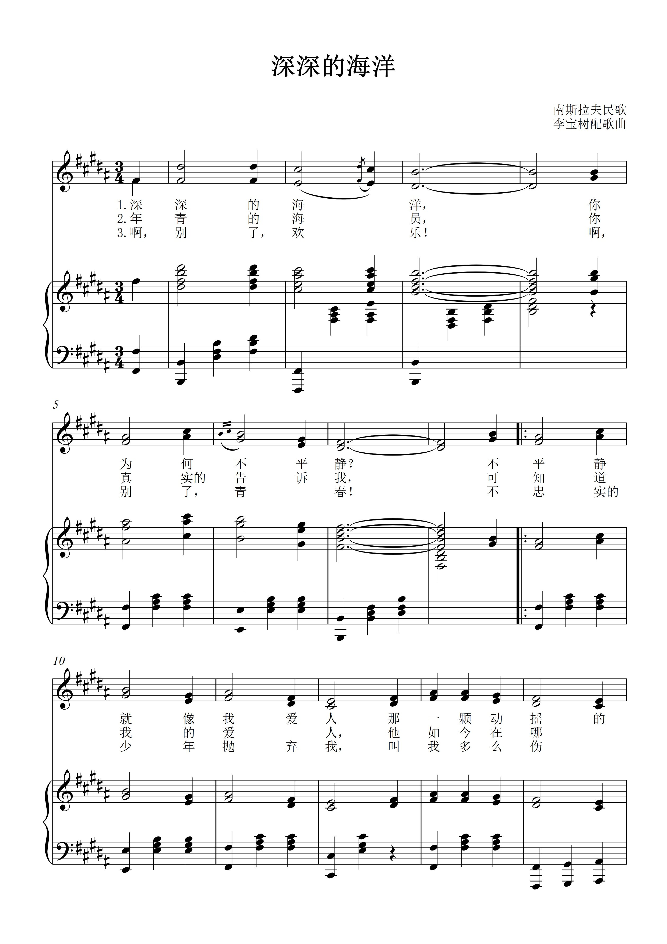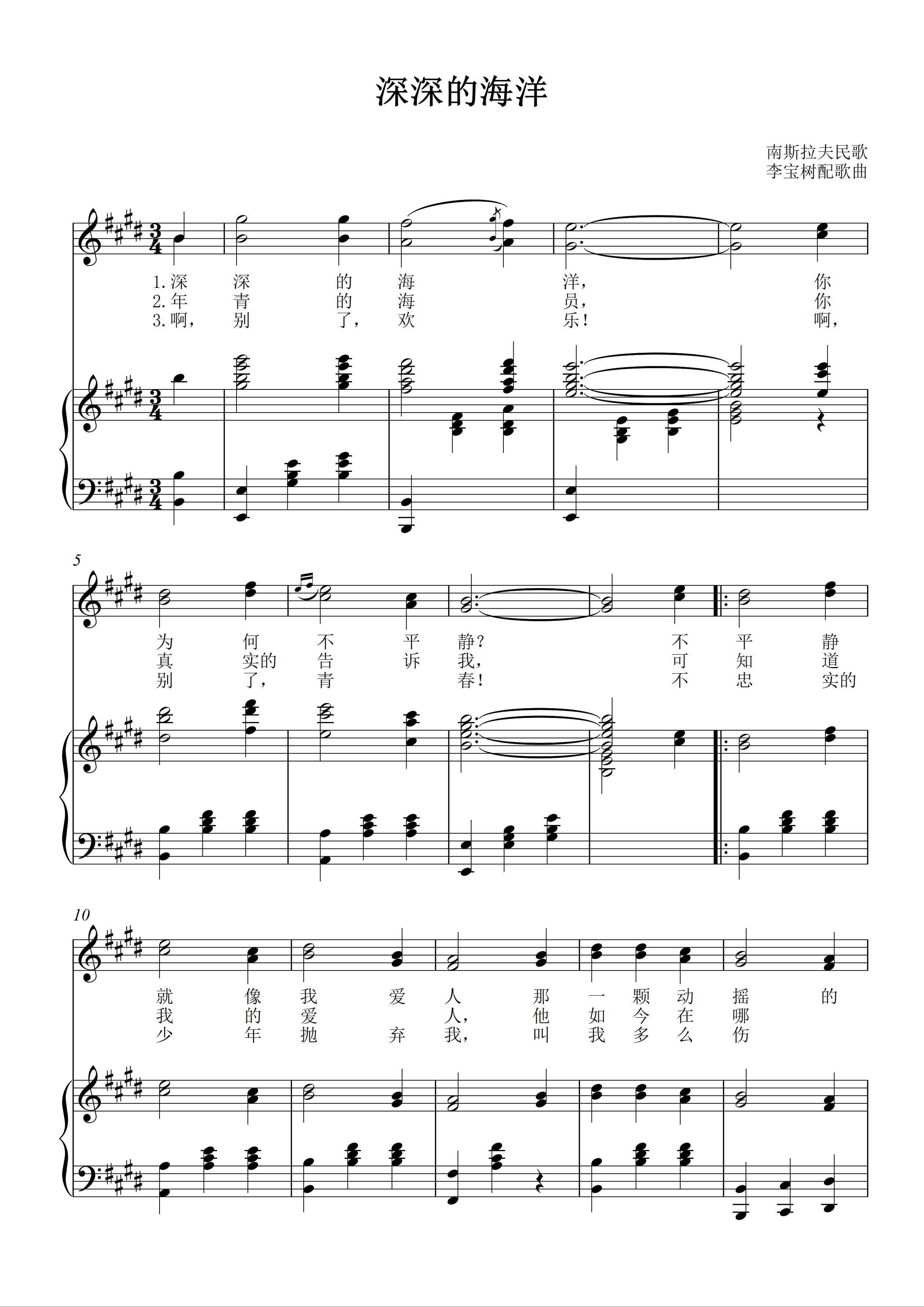 Deep Ocean E-fall E D C B A Yugoslav folk folk vocal piano accompanied by a positive spectrum of five lines