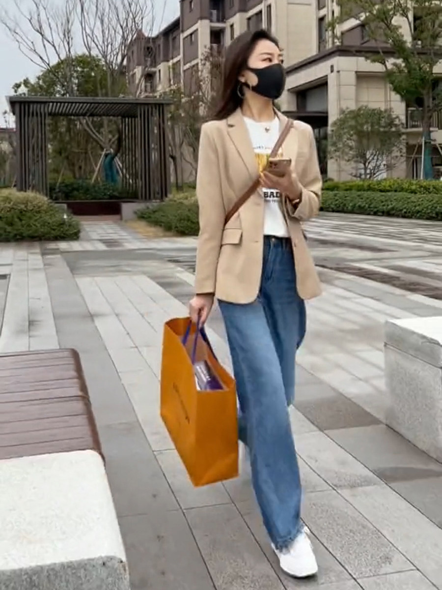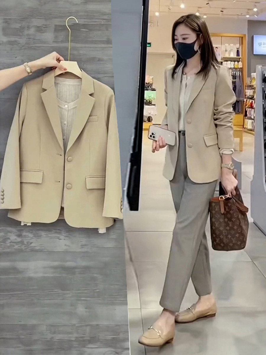 Temperament Casual Suit Jacket Woman 2022 Chunqiu New Advanced Sensation Card Its Color Minimalist Fashion Net Red Blouse Tide