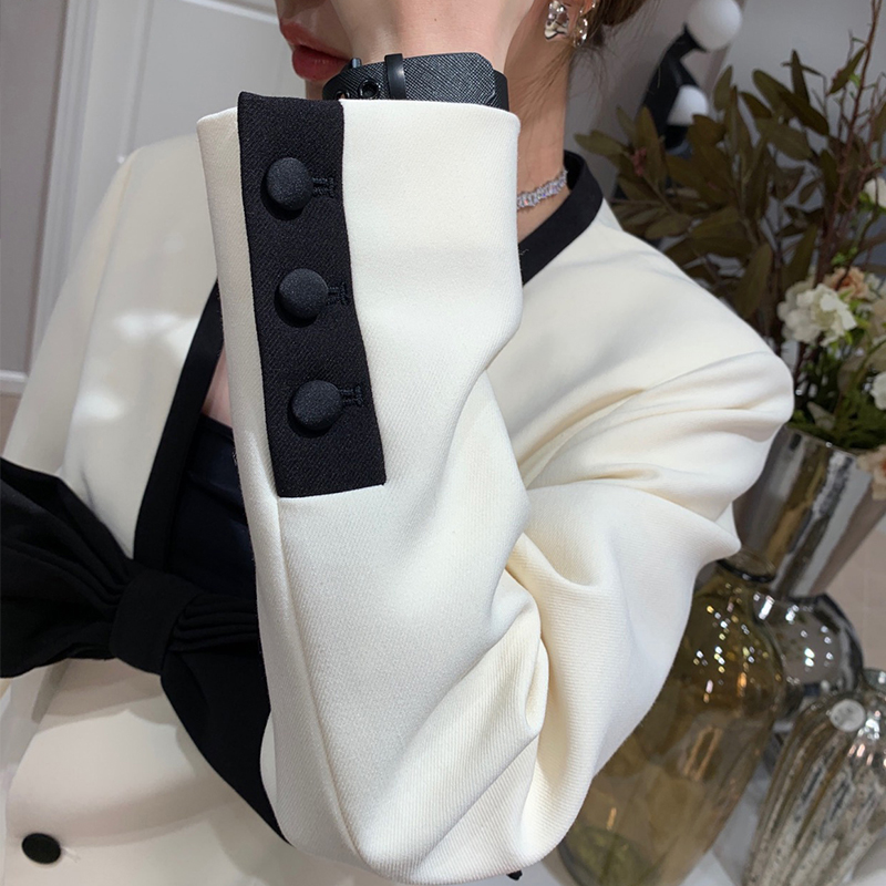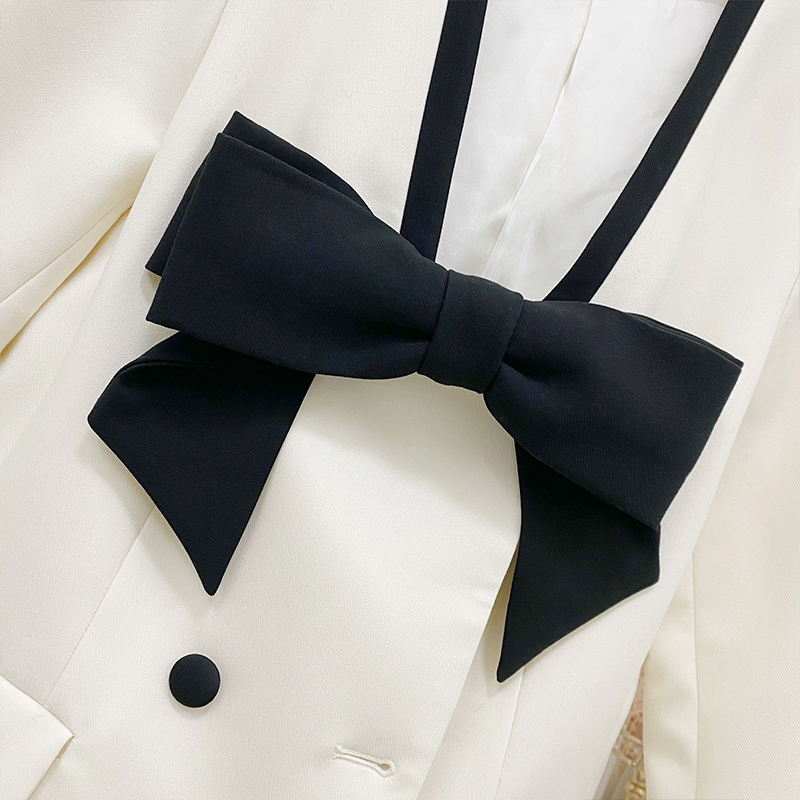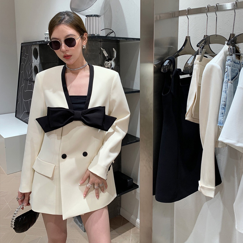 Small fragrant wind butterfly knot double row button V collar white suit foreign dress female spring method Loose Temperament Western Suit Jacket