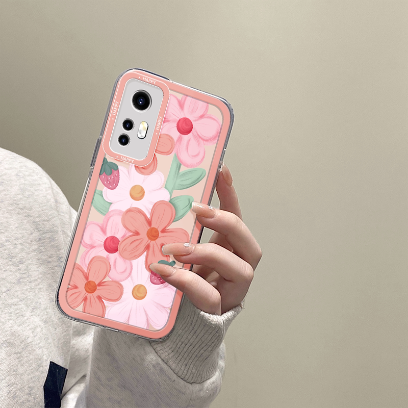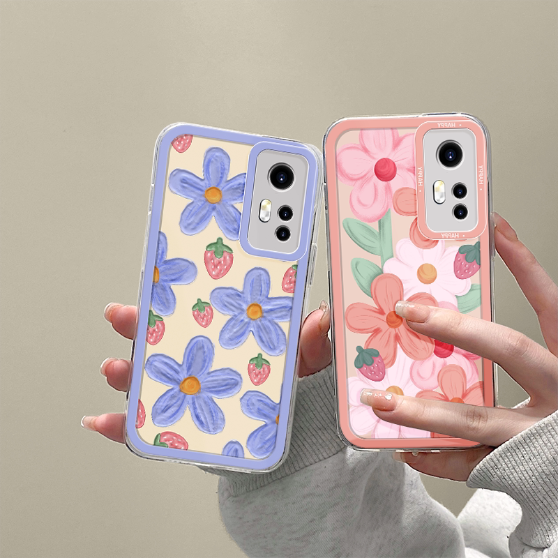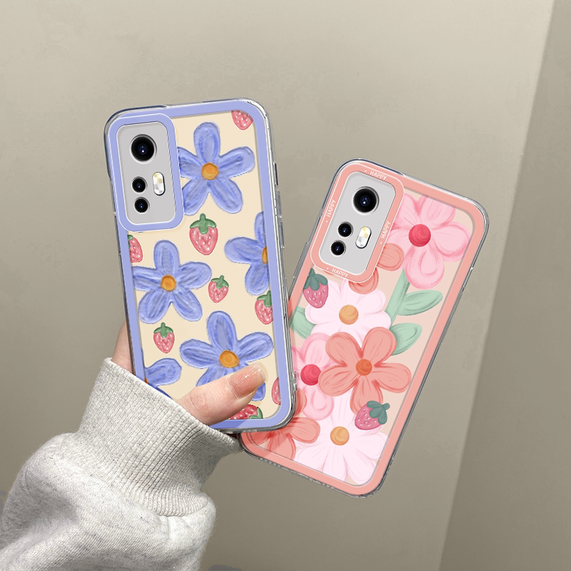 Xiaomi series transparent purple flower strawberry flower mobile phone protective shell,Xiaomi 12