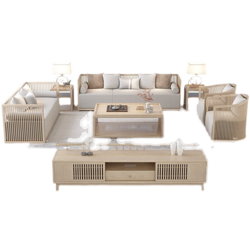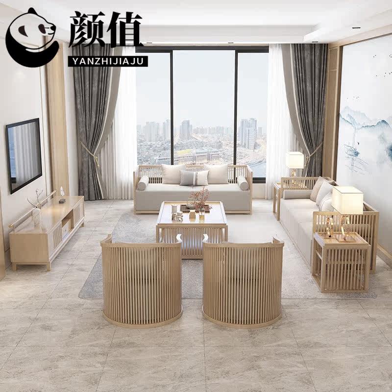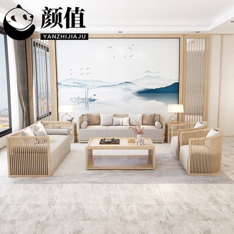 New Chinese-style solid wood sofa combination modern Chinese-style homestay club hotel log-colored teahouse simple card seat furniture