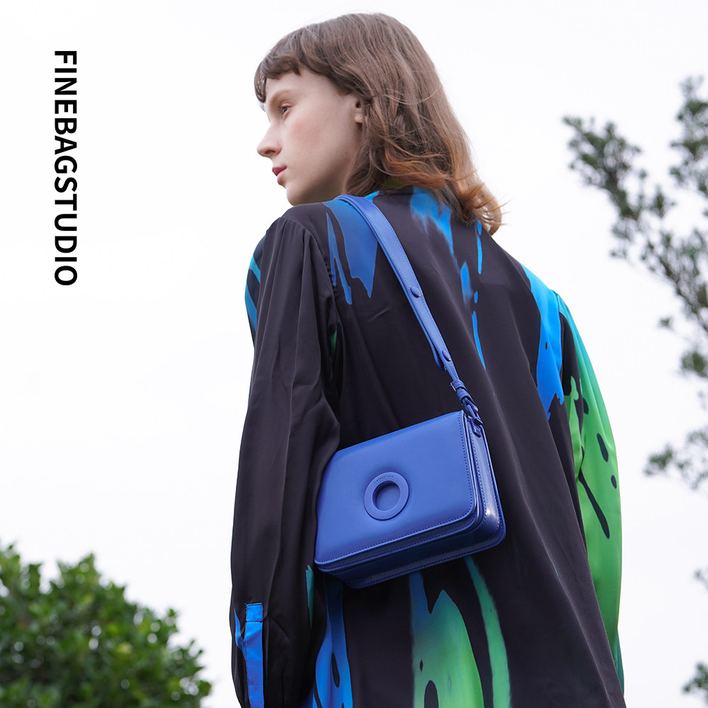 Finebagstudio autumn and winter new women's crossbody small square bag original design Klein blue niche high-end sense