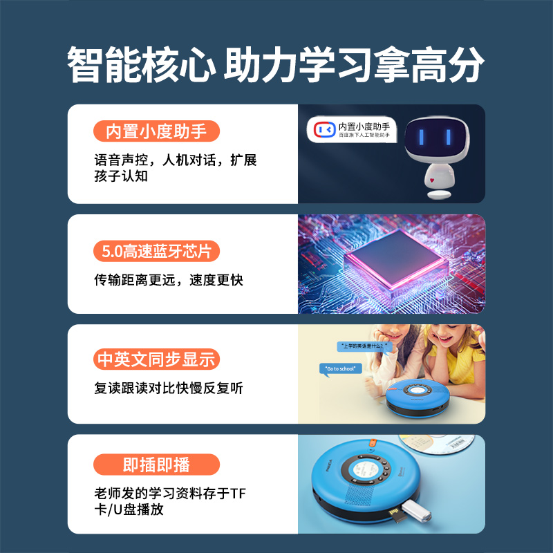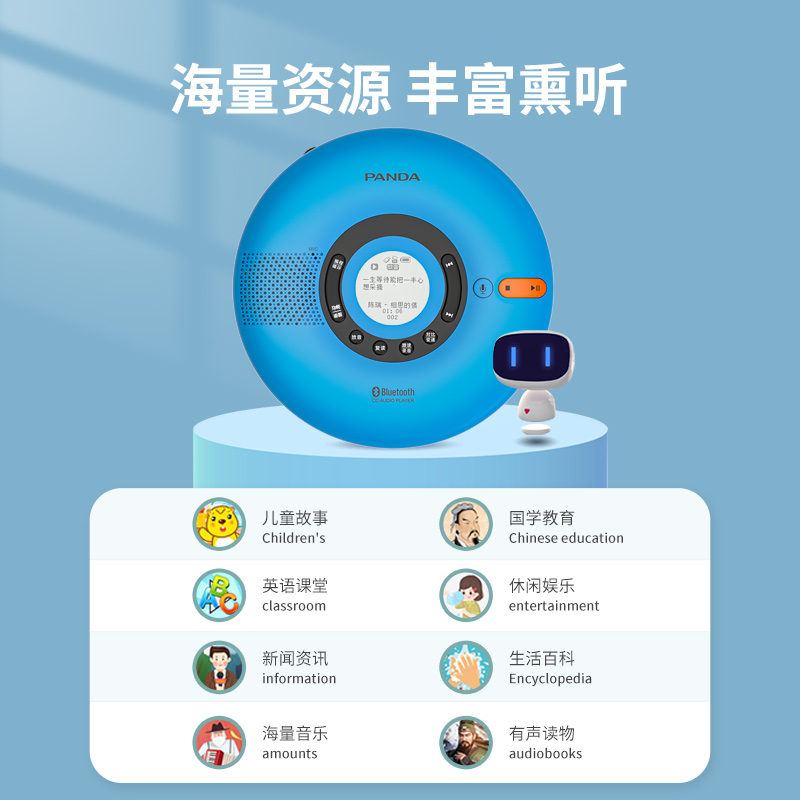 Panda F-08 English CD player portable CD player repeater English listening learning Bluetooth card CD-ROM