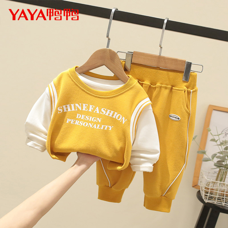 Duck Duck Child Clothing Men's Spring Clothing Casual Blouse Suit 2022 New Baby Foreign Pie Casual Sports Clothes Two Sets