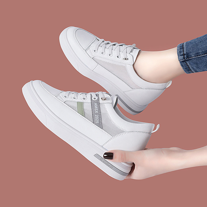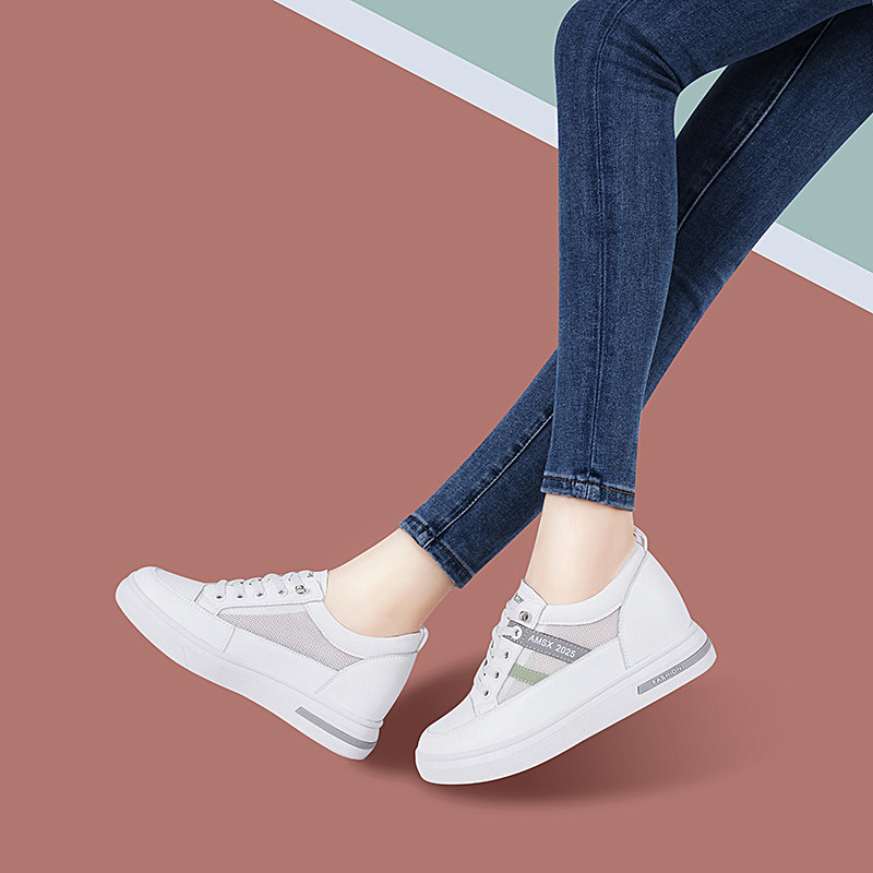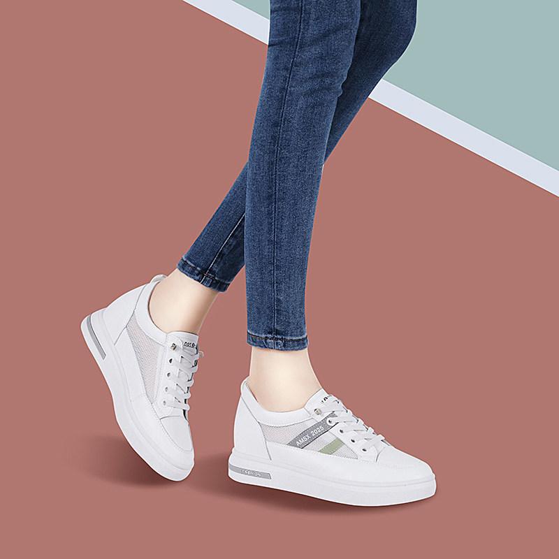 Sports shoes women's 2021 new all-match temperament thin inner height 8cm summer thin mesh breathable white shoes