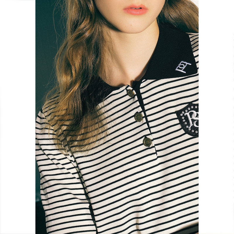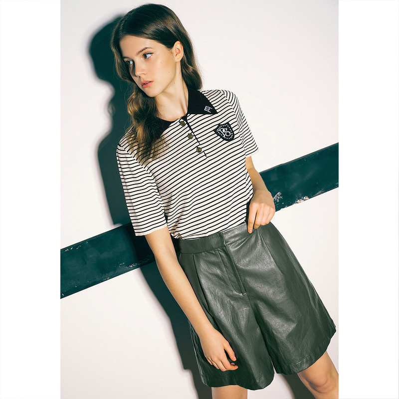 Poetic women's dress 2022 Summer new Flipped Striped College Wind Knit Short Sleeve Polo Needle Weaselwear