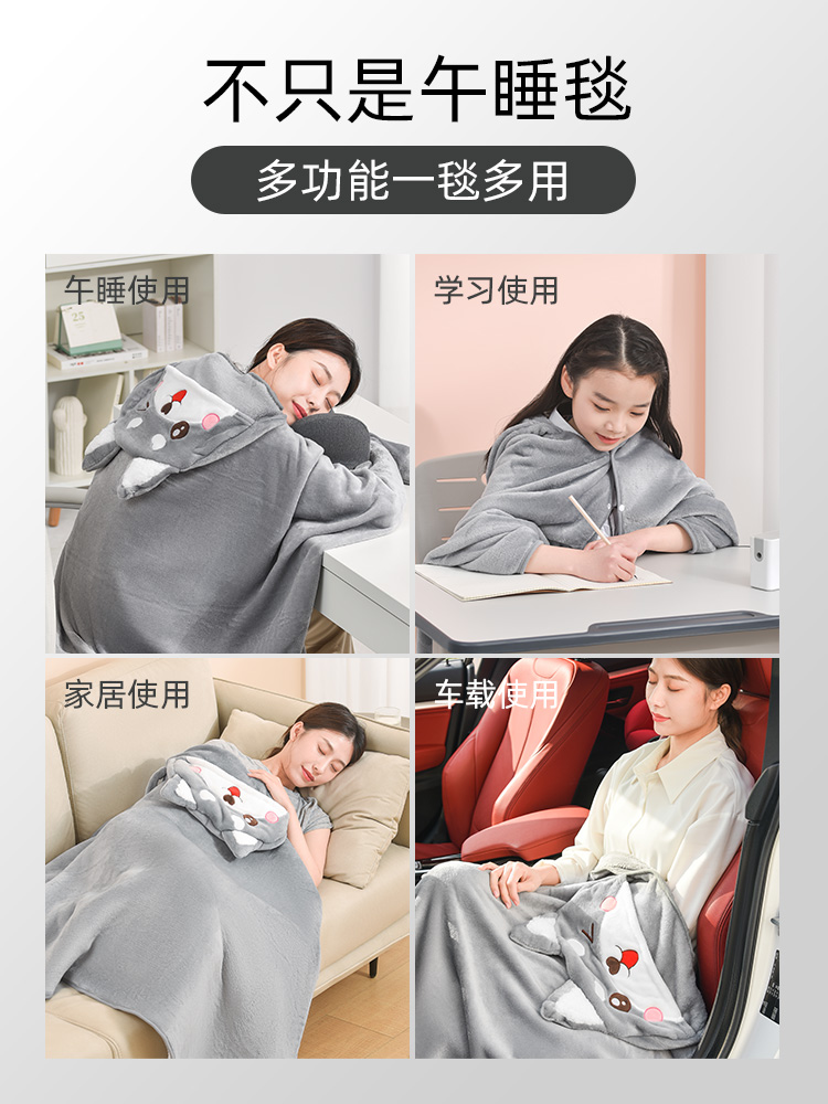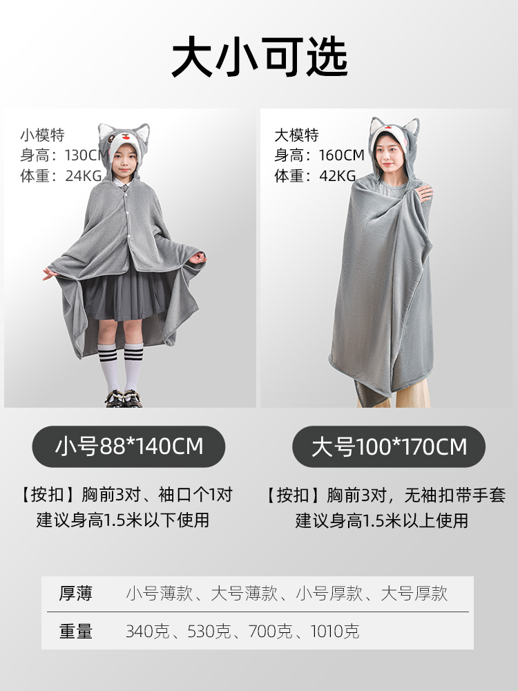 Primary school students nap blanket small blanket winter lamb velvet thickened children's single hooded shawl creative cloak blanket