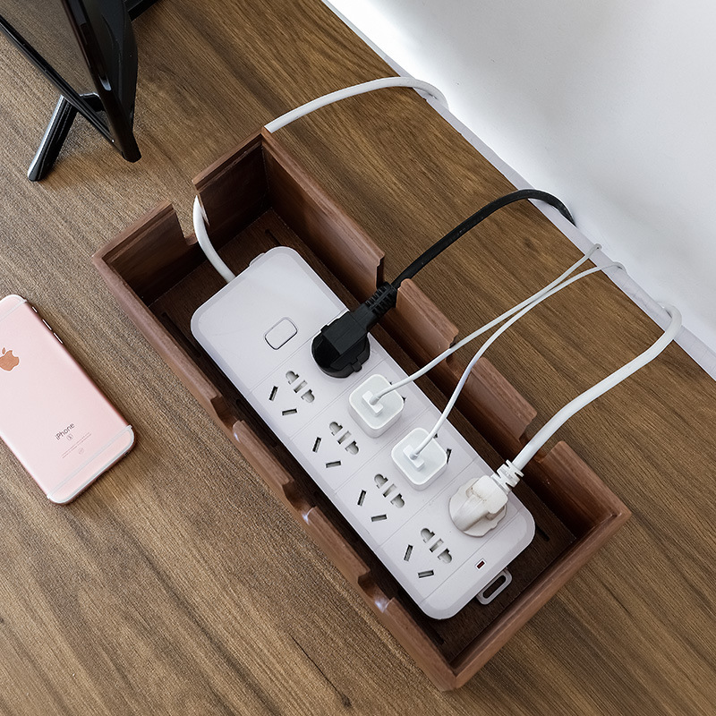 Wooden set wire box wire wire manager data cable blocker desktop storage and arrangement power cord socket plug-in box
