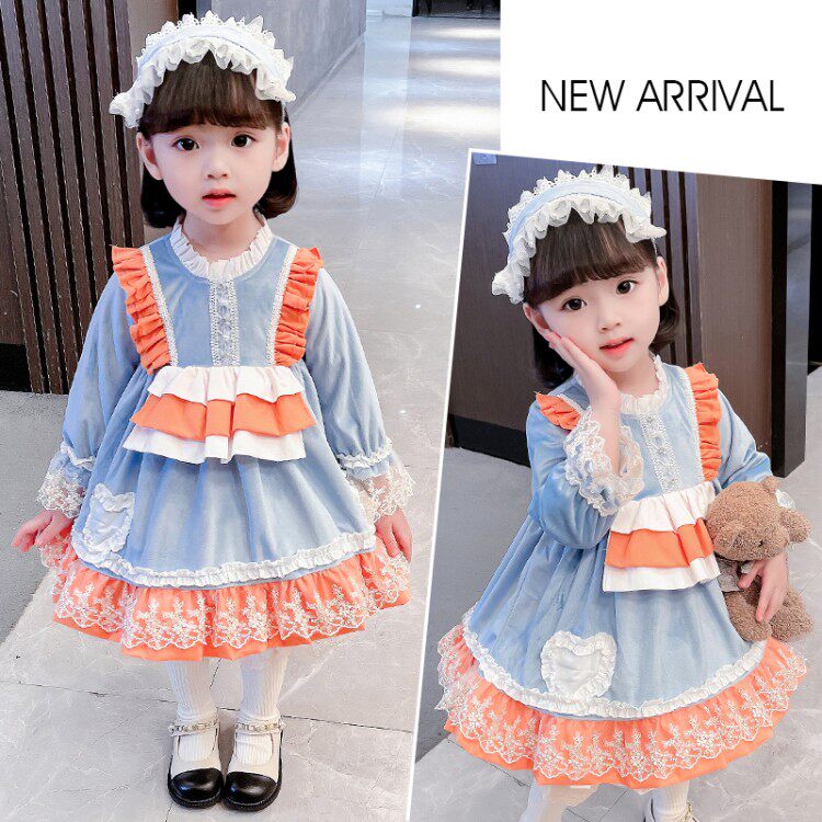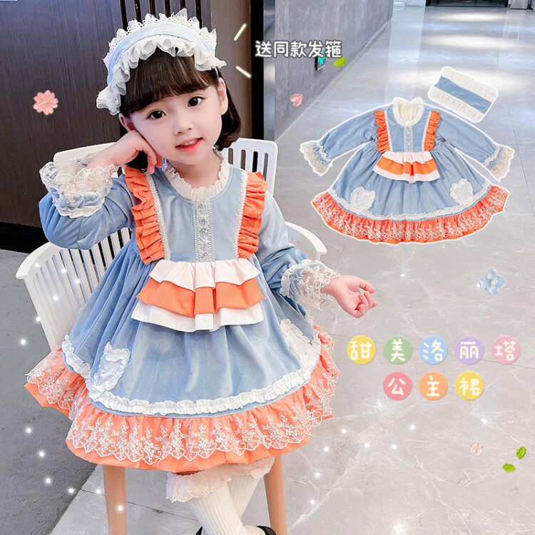 Girl Roleita Ocean Dress 2022 New Spring Dress Children Foreign Pie Fluffy Princess Dress Baby Mesh Red Dress