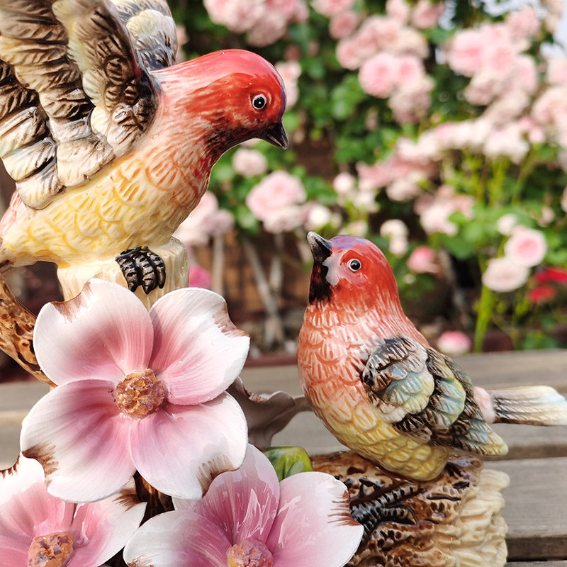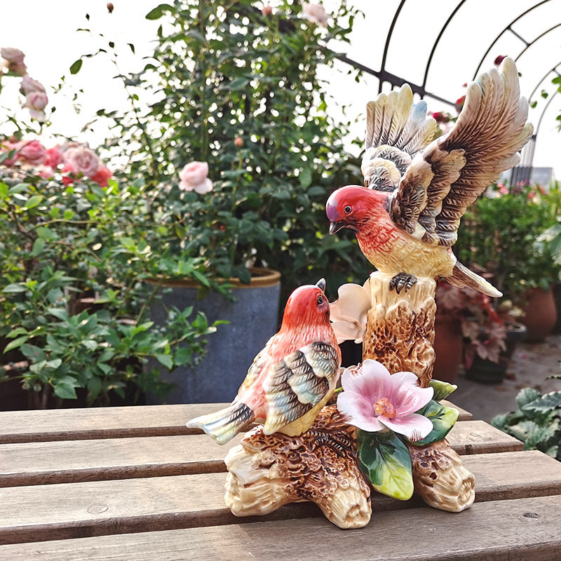 Ceramic Eurostyle Big Red Bird Swing Piece Adornment Home Xuanguan Cute Couple Living Room Desktop Animal
