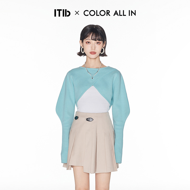 ITIB×COLOR ALL IN designer joint style 2022 spring new top and claw sleeve two-piece set