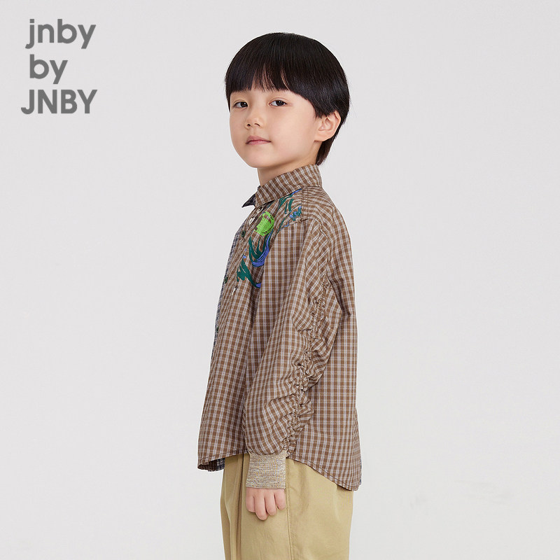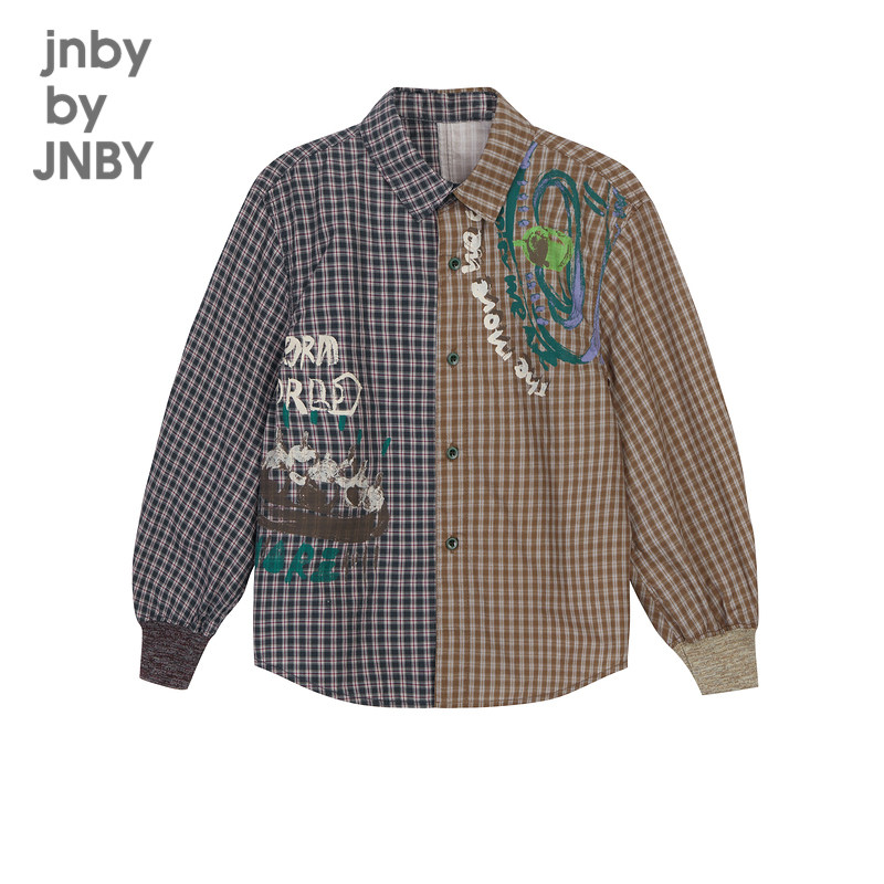Jiangnan Buyi children's spring shirt long-sleeved plaid large color block stitching printing boys and girls jnbybyjnby