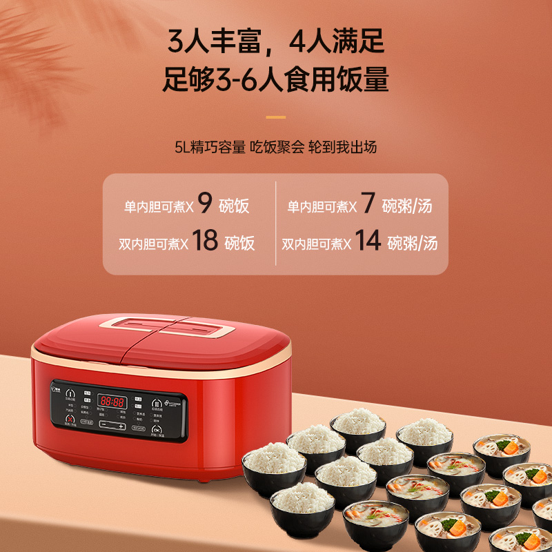 Non-cooking non-cooking rice cooker household 3 to 4 people cooking and cooking all-in-one pot multi-functional intelligent large-capacity 5 liters