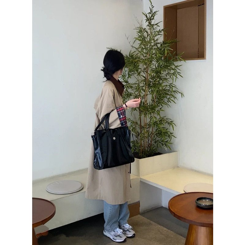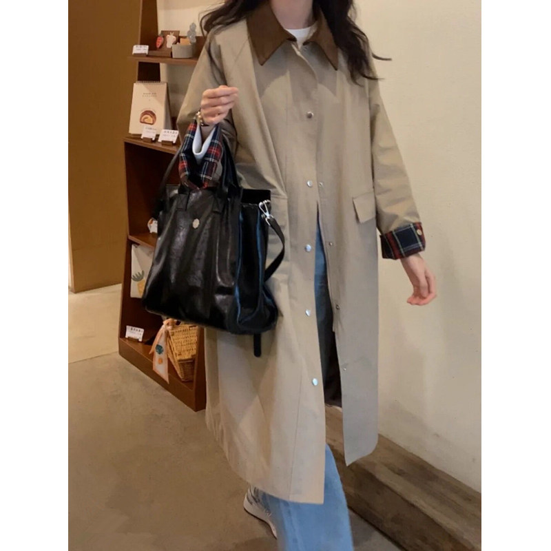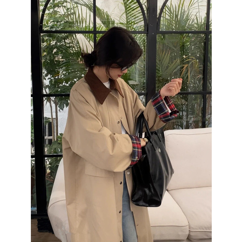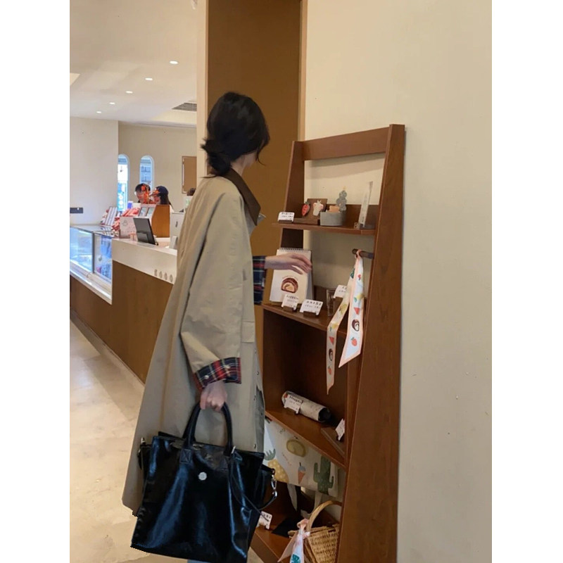 2022 New spring and autumn windcoat jacket women's coat with long version of small child chic spring style Korean wind advanced texture