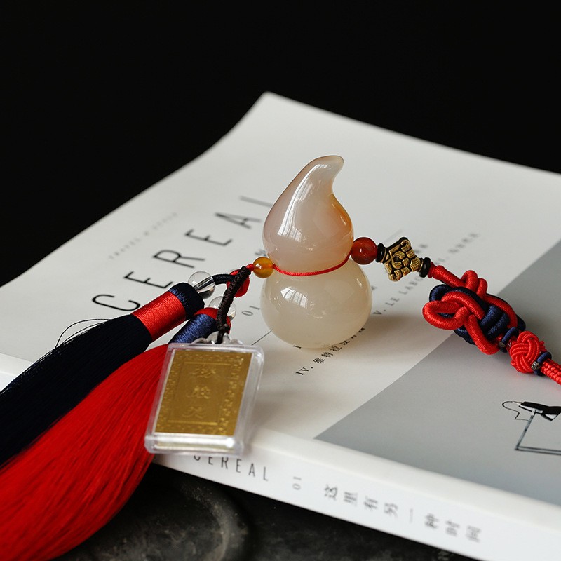 White jade gourd car pendant chalcedony hanfu forbidden to step waist wear pressure lapel Shurangama curse to keep safety car pendant pendant