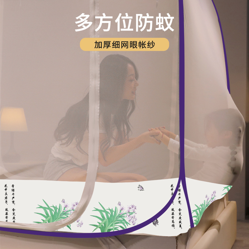 2022 New household bedroom installation of Mongolia's insect net three open door zipper anti - fall foldable convenient to remove