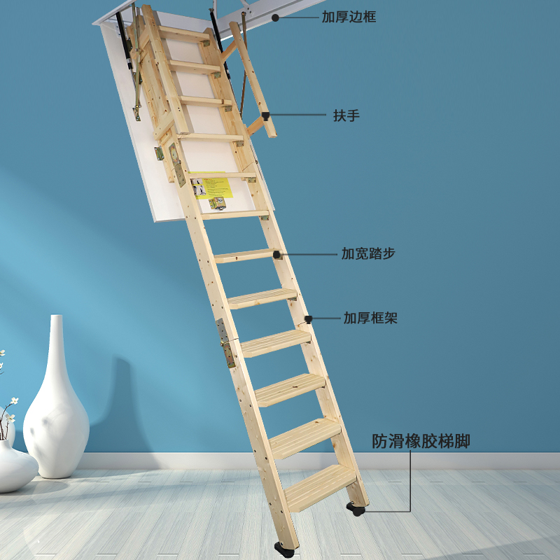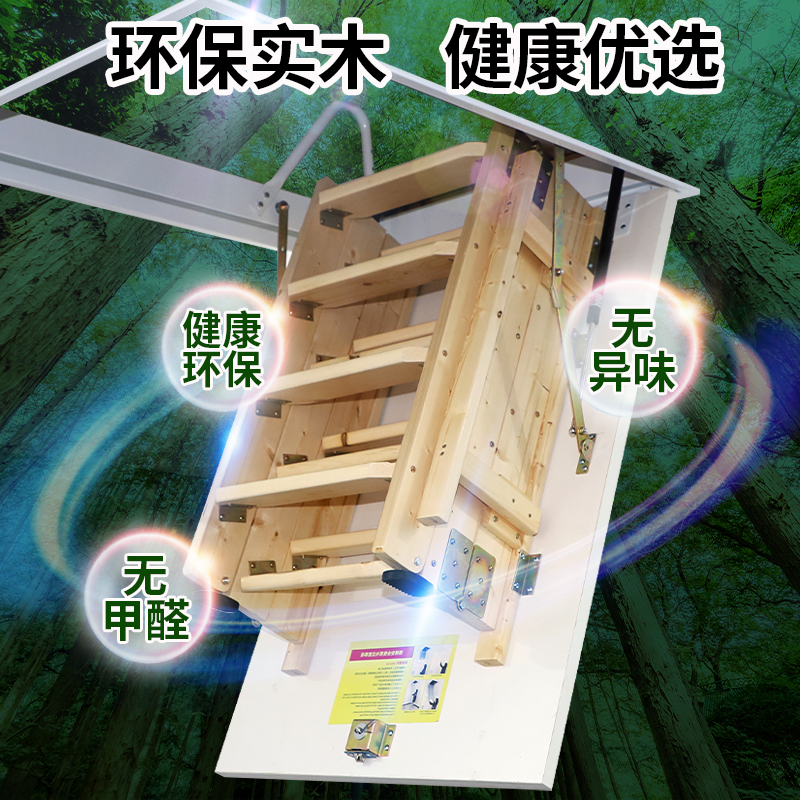 Attic Solid Wood Extension Folding Folding Stairs Home Semiautomatic Stairway Indoor Villa Lift Pull Up Stealth Ladder Customize