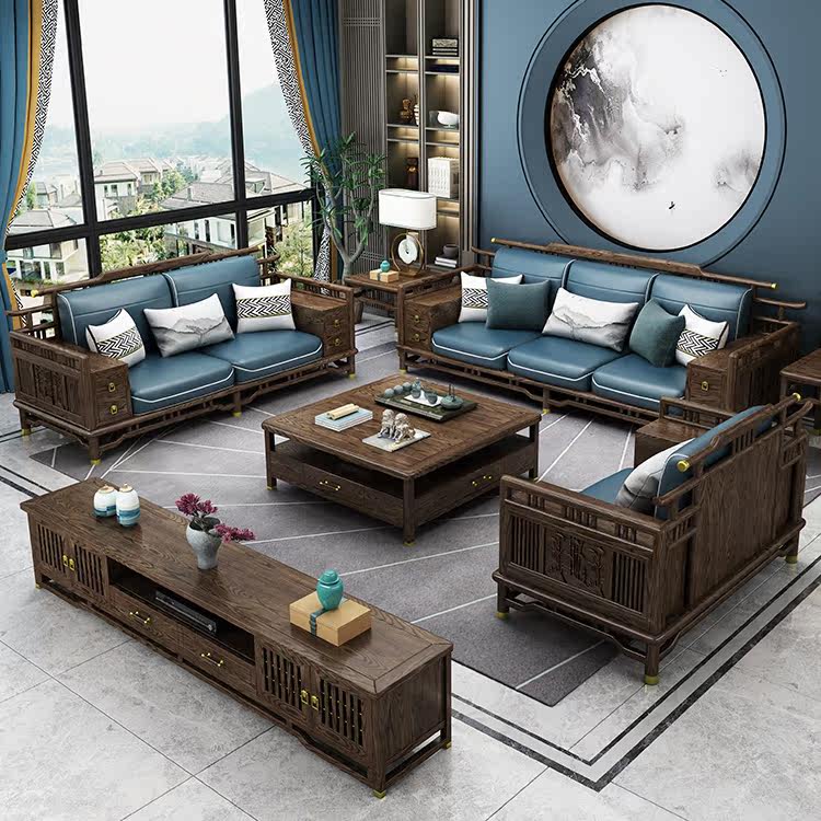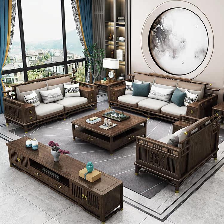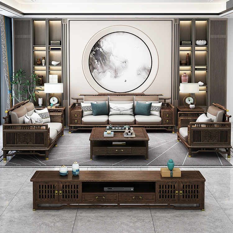 Imported ash wood new Chinese style all solid wood sofa combination living room large apartment modern minimalist villa storage furniture