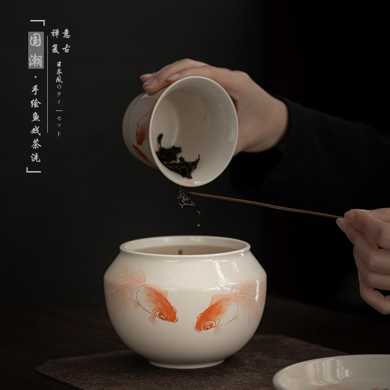 Household ceramic tea wash Japanese kung fu tea set living room retro tea dregs cup wash wash tea pot water bowl handmade