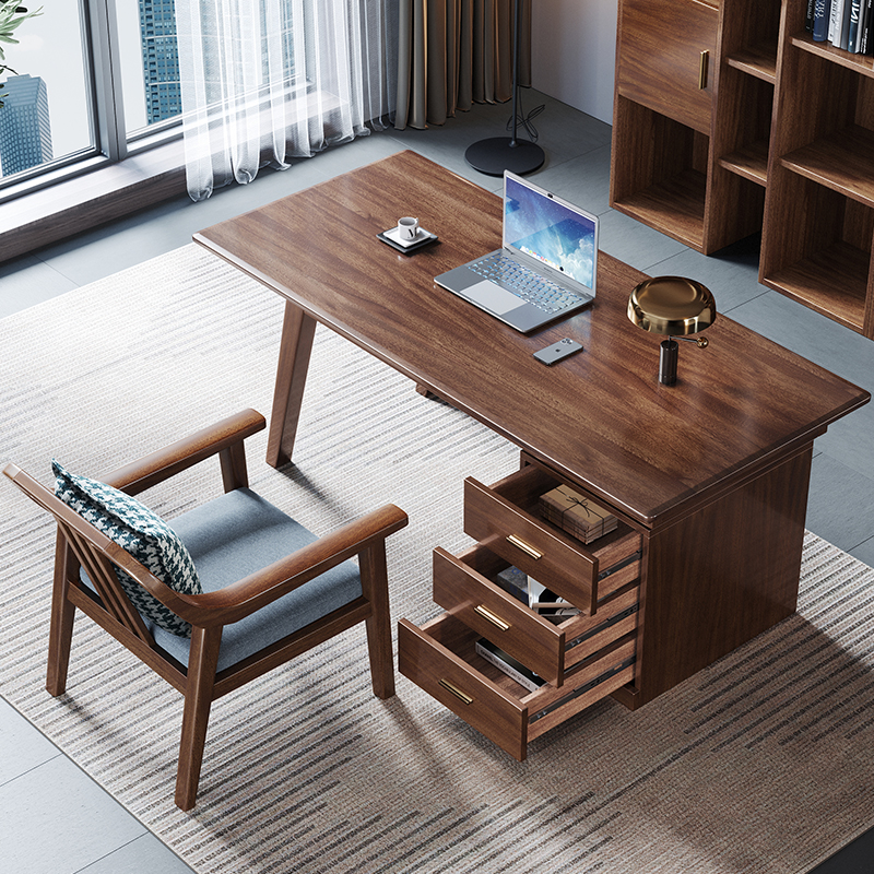 Modern Desk Chair Bookhouse Furniture Suit New Chinese Walnuts Wood Solid Wood Writing Desk Desk Combination Light Extravagant
