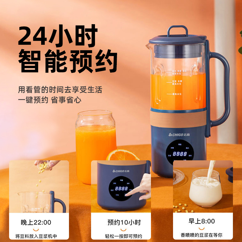 Chigo ZYJGN-D08 Soymilk Maker Household Mini Multifunctional Wall Breaker Free of Filter and Boil 1 Single 2 People