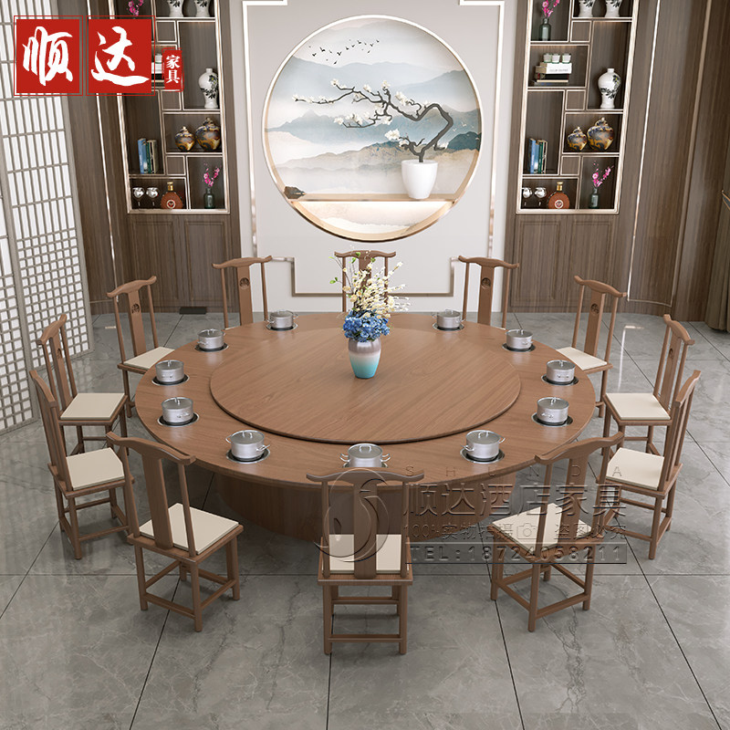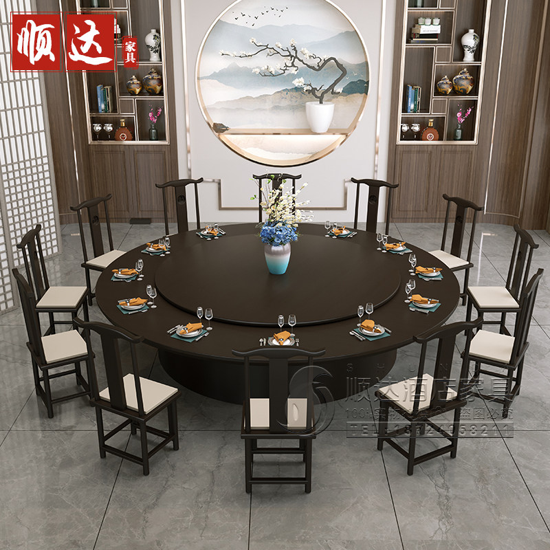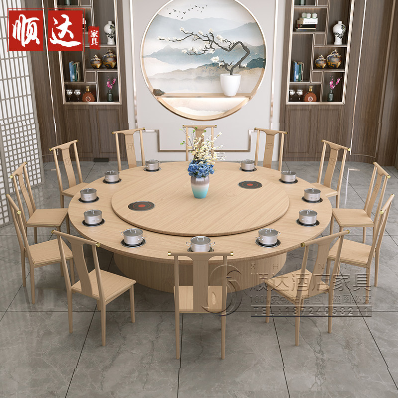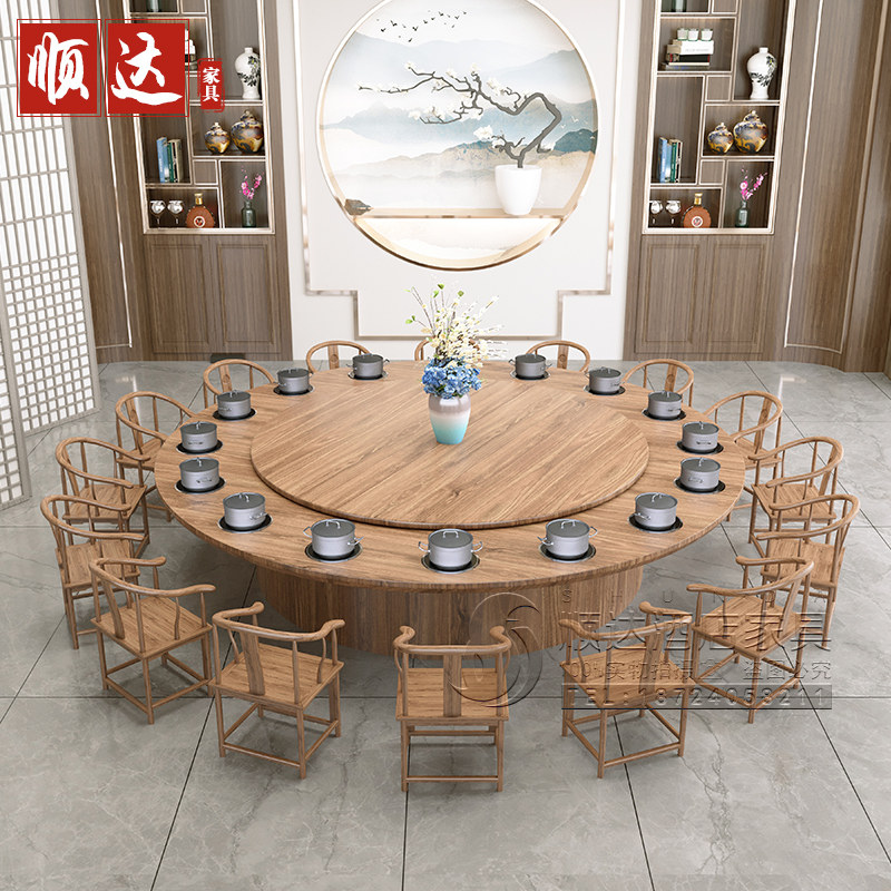 New Chinese-style hotel dining table electric large round table 15 people 20 people banquet box automatic rotating plate small hot pot table and chairs