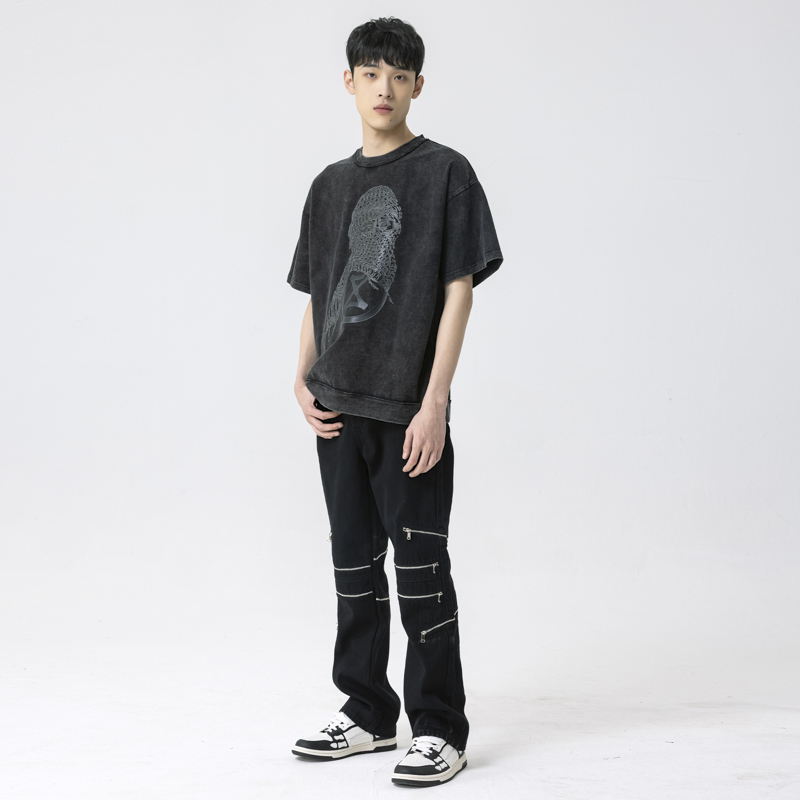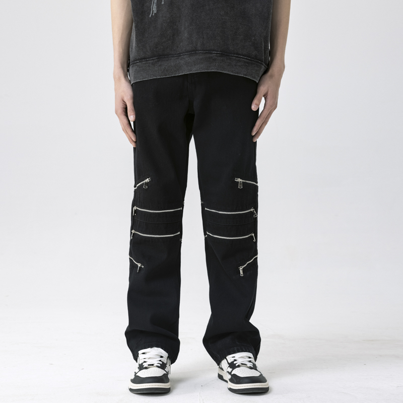 XINYINSU new factor knee Dozipper split microhorn straight jeans