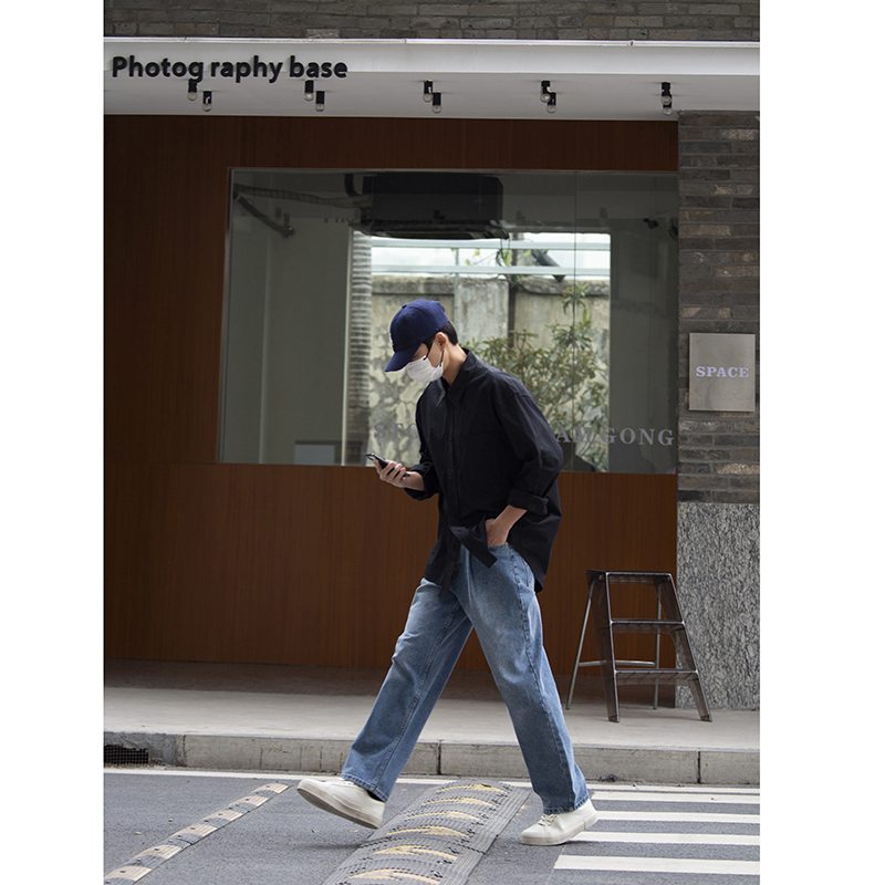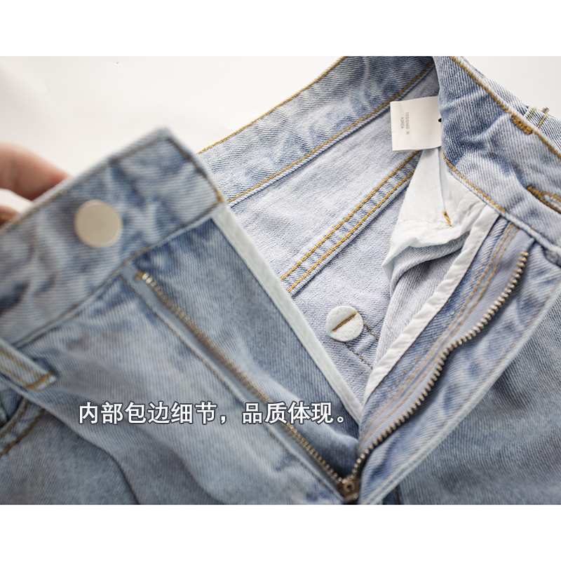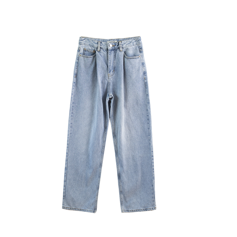 MOREFANS Korean version pleated loose straight jeans mid-waist trousers men's casual washed popular summer