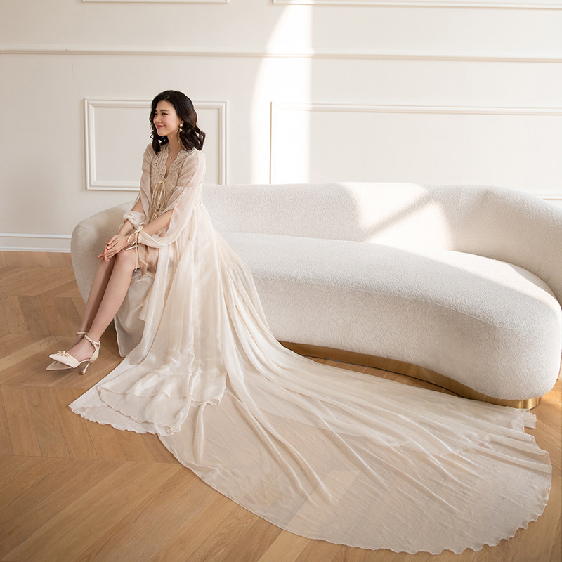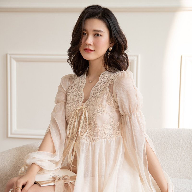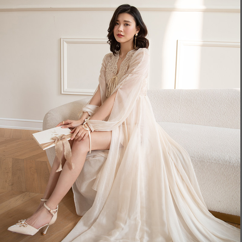 Dye Qin Morning Gown Girl Bridal Style Advanced Feeling Married Long Version Lavish Sleepwear Spring Summer Wedding Little Crowdlace Sleepwear