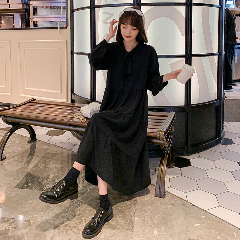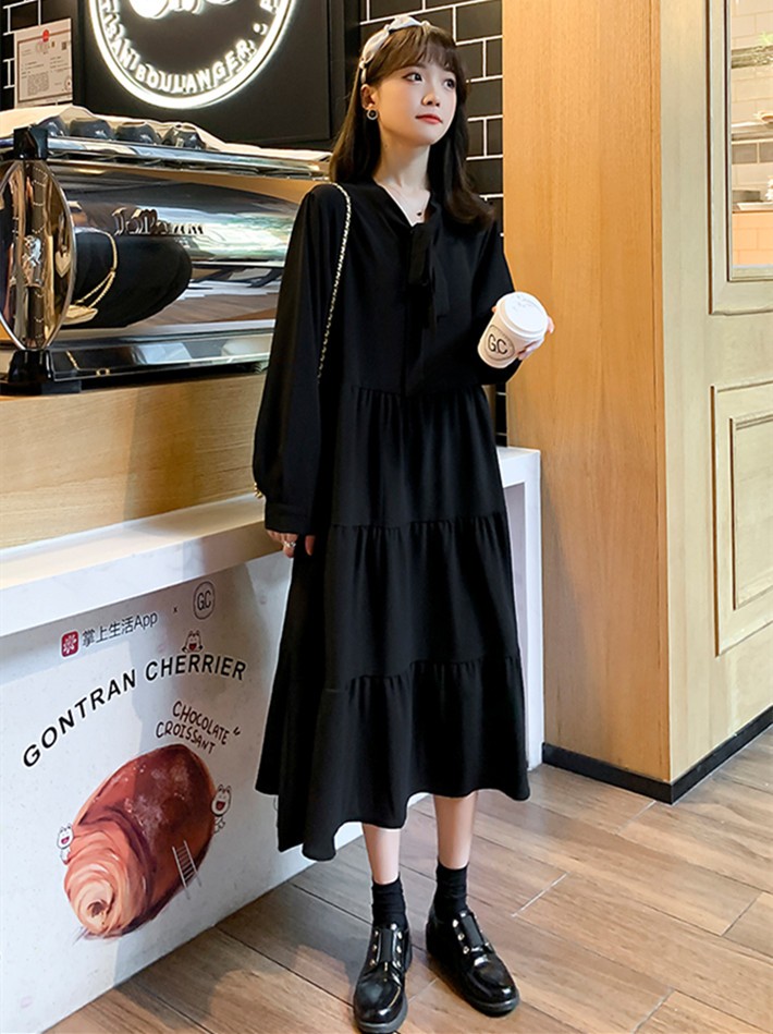 Plus fat plus size pregnant women's spring dress long-sleeved chiffon mid-length dress fat MM200 jins tide mom loose long skirt